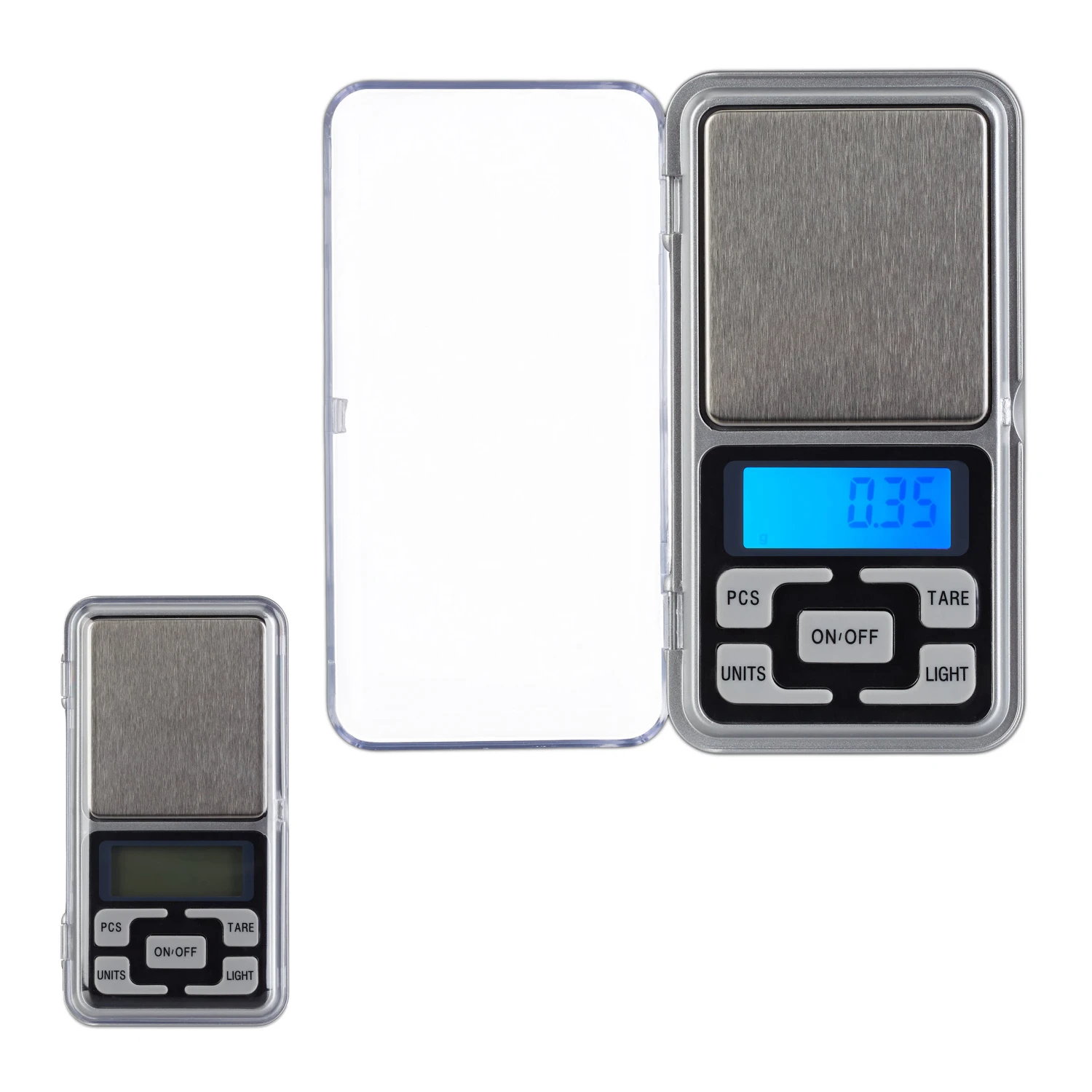 Die feine Waage im handlichen Taschenformat ist der ideale Begleiter auf Reisen. Die silberne Münzwaage wiegt mit hoher Präzision bis 200 g und zeigt das Gewicht in 0,01 g Schritten an. So bestimmen Sie genau das Gewicht von Münzen, Briefen, Schmuck, Tabletten und vielem mehr. Auch in der Küche macht sich die Waage gut zum Abwiegen von kleinen Mengen, wie von Kaffee oder Gewürzen. Dank des hellen LCD-Displays lässt sich das Messergebnis auch in dunkler Umgebung leicht erkennen. Mit der klappbaren Abdeckung bleibt Ihre Waage vor Kratzern geschützt, sodass Sie lange Freude an ihr haben.