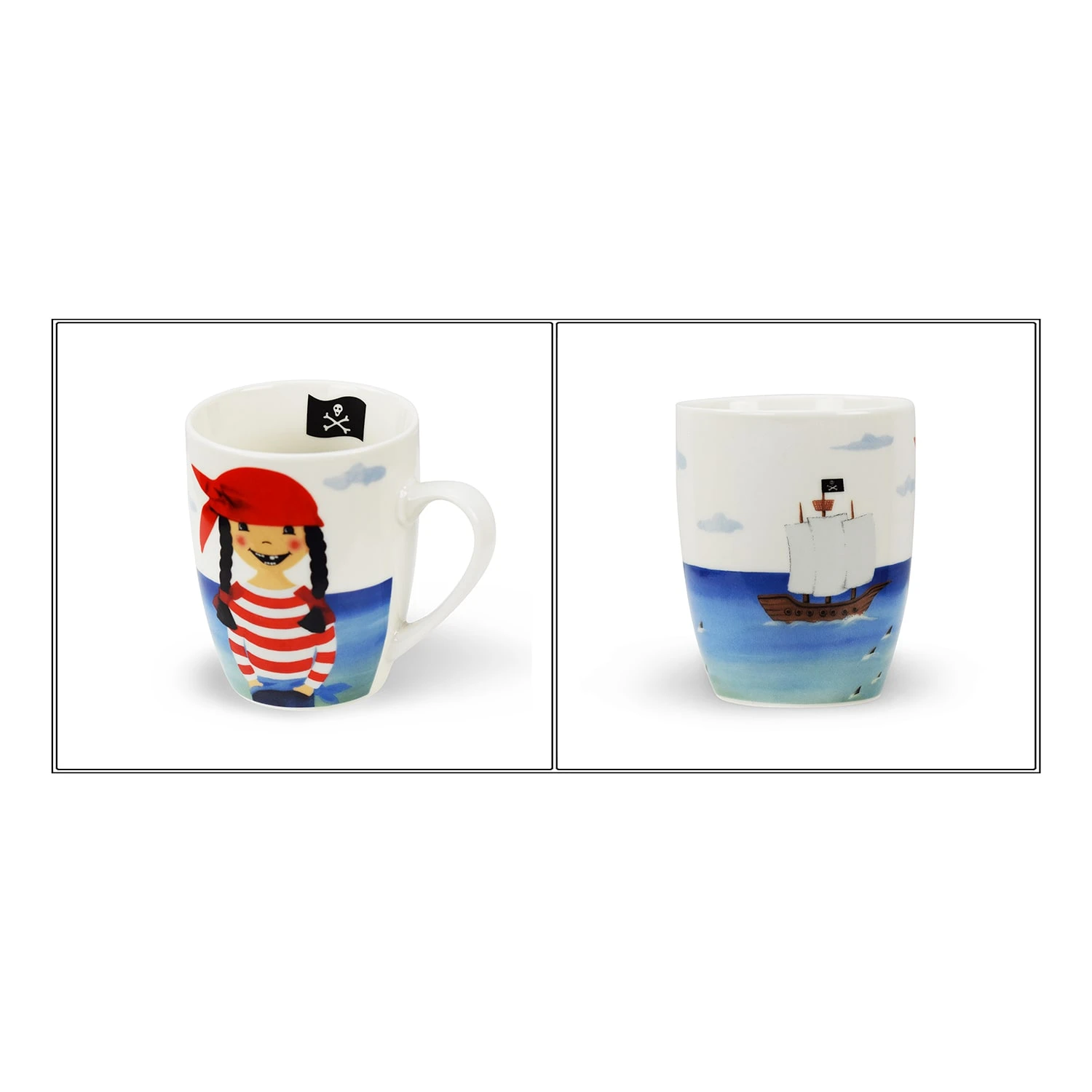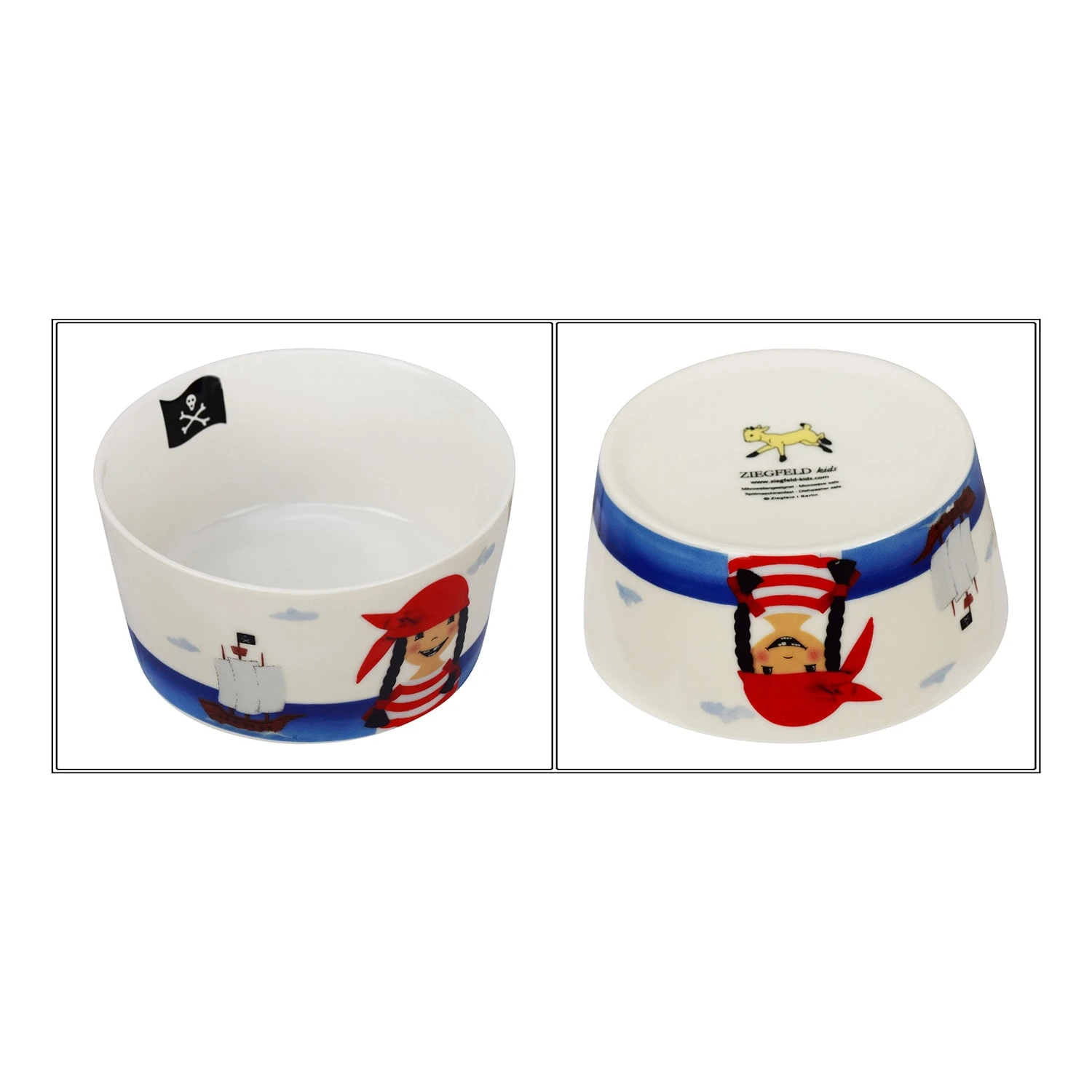 Cooles 3-teiliges Porzellanset PIRATIN PAULA für kleine und große Abenteurer und Weltenbummler. Es besteht aus Tasse, Teller und Müslischale, ist spülmaschinenfest und mikrowellengeeignet. Ausgefallenes Geschenk für den Kindergeburtstag oder die Einschulung