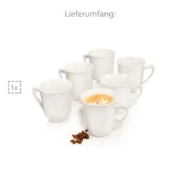 Dieses Porzellan Becherset beeindruckt sowohl mit der geschwungenen Formgebung, als auch mit den auergewöhnlich festlich designten Henkeln, die diesem Geschirrset seine unbeschreibliche Eleganz verleihen. Die fein ausgearbeitete Form verspricht exquisiten Kaffee- oder Teegenuss.