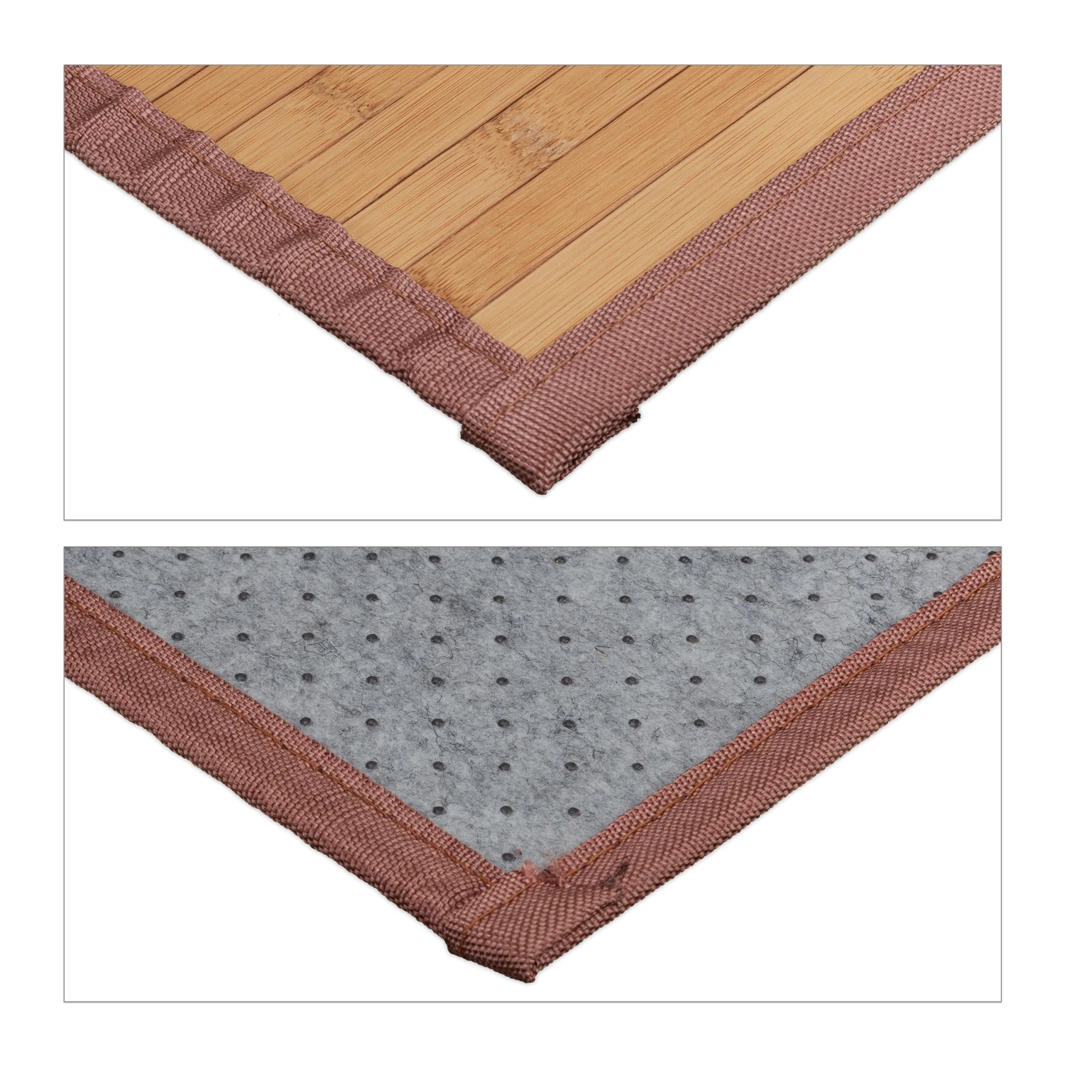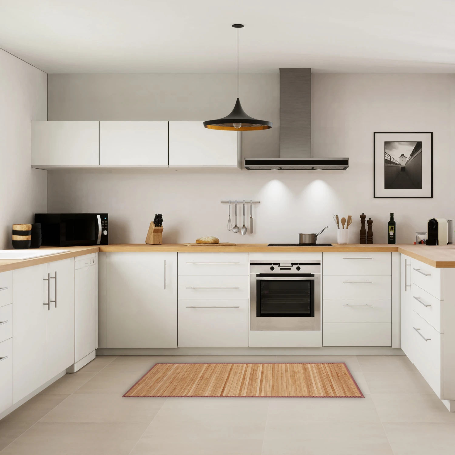 Optisch kalte Badeinrichtungen tragen nicht gerade viel zu einem angenehmen Wohngefühl bei. Mit der Badematte aus natürlich schönem Bambus setzt Du der Kälte etwas entgegen. Das Material fügt sich mit seiner warmen Optik nicht nur wunderbar ein, sondern ist außerdem sehr widerstandsfähig und feuchtigkeitsresistent. Auch als Küchenteppich ist der Bambusläufer daher bestens geeignet. Die rutschhemmende Unterseite verhindert, dass der Duschvorleger über glatte Fliesen gleitet.