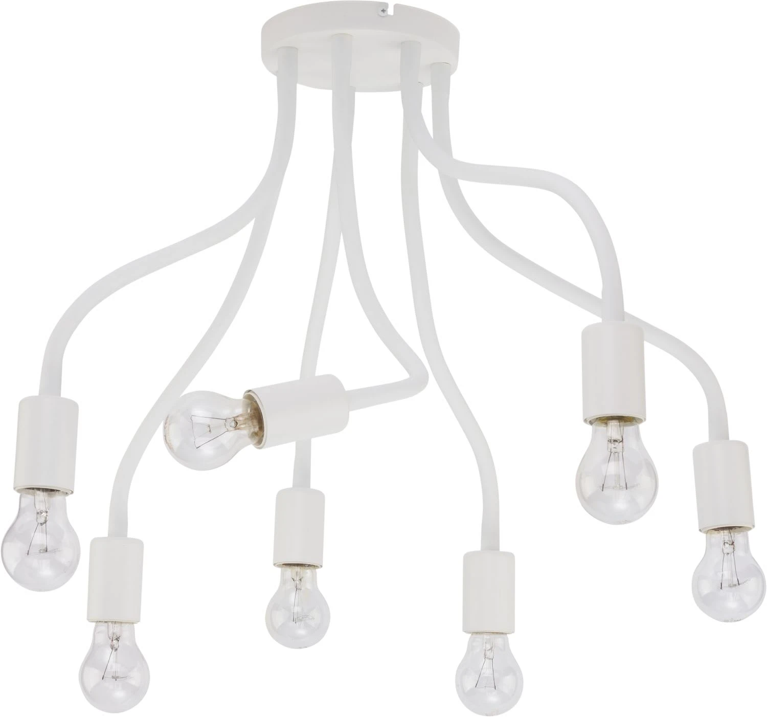 Fassung: 7x E27 bis 60W | Farbe: Weiß | Material: Metall | Spannung: 230V | Spritzschutzklasse:IP20 | wechselbare E27 Fassung – mit einem Leuchtmittel Ihrer Wahl können Sie Leuchtwirkung und Aussehen Ihrer Leuchte selbst bestimmen | Befestigung durch biegsames Flexkabel, sodass die Leuchte in alle Richtungen ausgerichtet werden kann | Deckenleuchte hat lange Arme | Leuchte mit Armen | Hauptlicht mit breiter Lichtstreuung zur großzügigen Beleuchtung