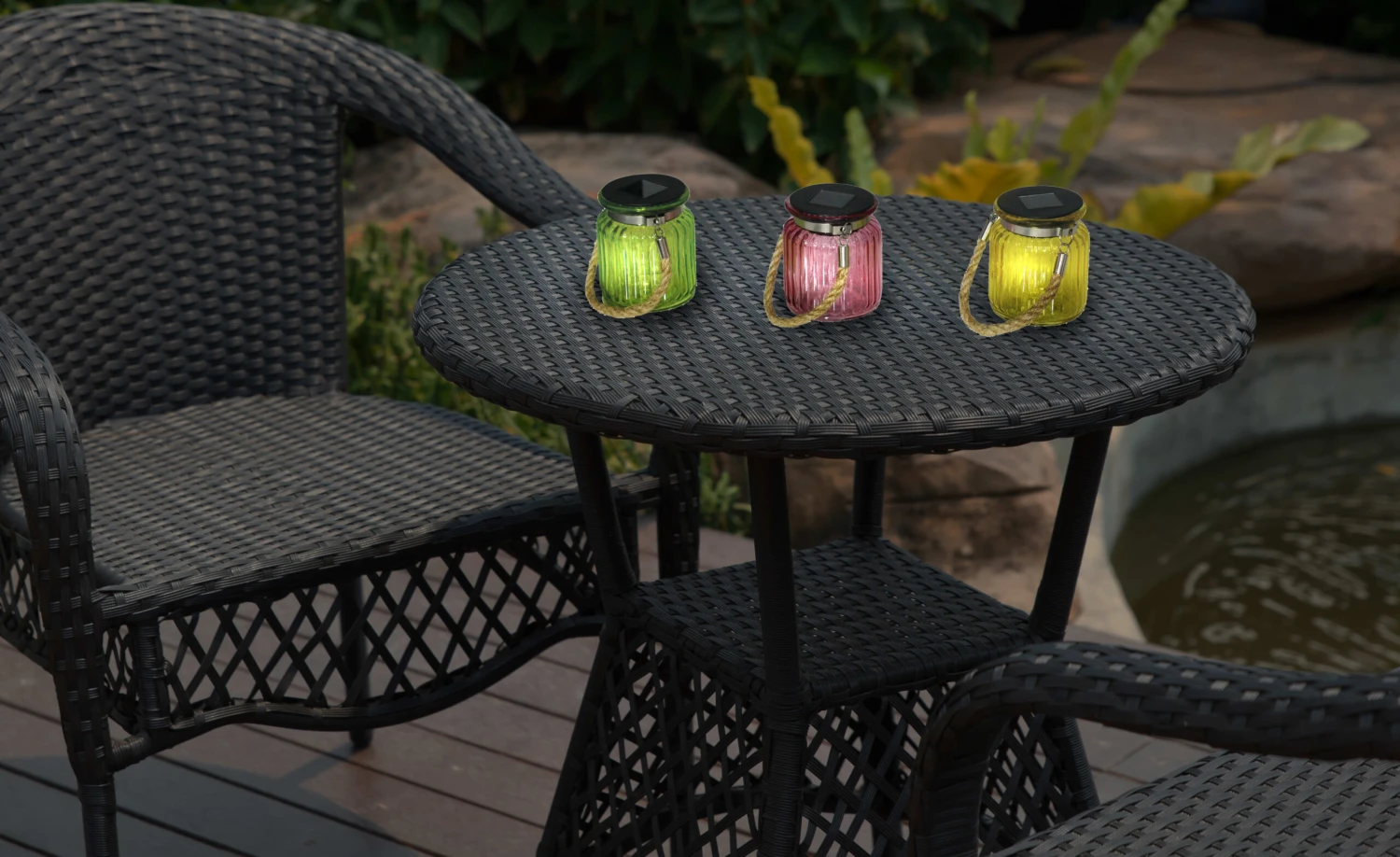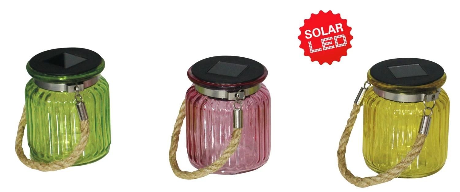 Deko-Solar-Glas mit Kordel „Jar“ 3er-Set in Bunt