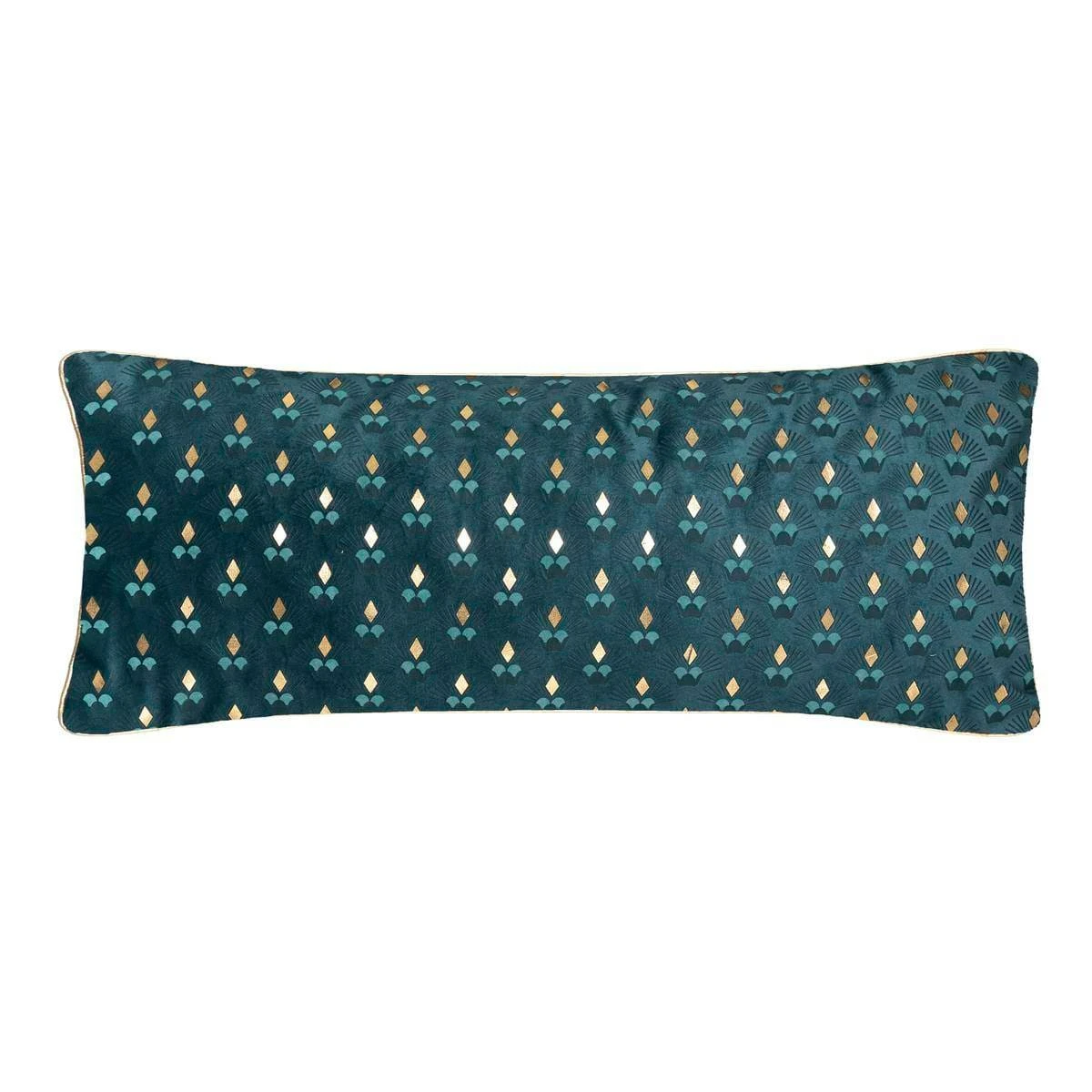 Das längsverlaufende Dekokissen in Meerfarbe von Atmosphera ist aus hochwertigem Polyester gefertigt, welches extrem strapazierfähig ist. Die Abmessungen des Kissens betragen 35 x 75 Zentimeter, wodurch dieses Element eine großartige Dekoration für ein Sofa oder einen Sessel ist. Die Meeresfarbe und schimmernde Elemente verdienen besondere Aufmerksamkeit.