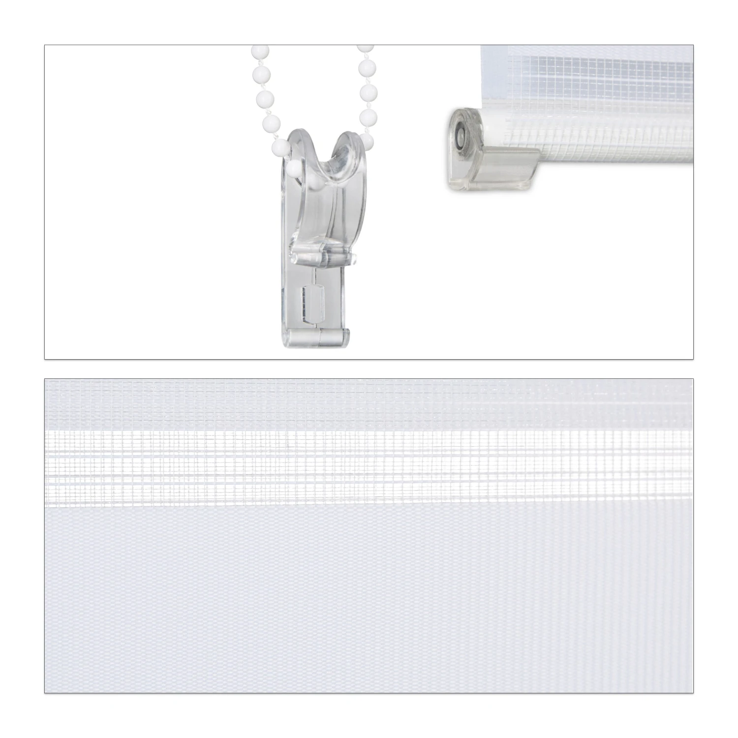 Das Doppelrollo Klemmfix in weiß ist schick und multifunktional. Die unterschiedlich dicht gewebten Streifen sind lichtdurchlässig und blickdicht zugleich – je nachdem, wie das Rollo positioniert wird. Entscheiden Sie sich für einen leichten Sichtschutz mit viel Tageslicht oder geschützter Privatsphäre. Durch die Kette lässt sich das Seitenzugrollo einfach und schnell bedienen. Eingerollt fällt das Duo-Rollo kaum auf. Die praktische Klemmfix-Vorrichtung ermöglicht ein Anbringen ohne Bohren.