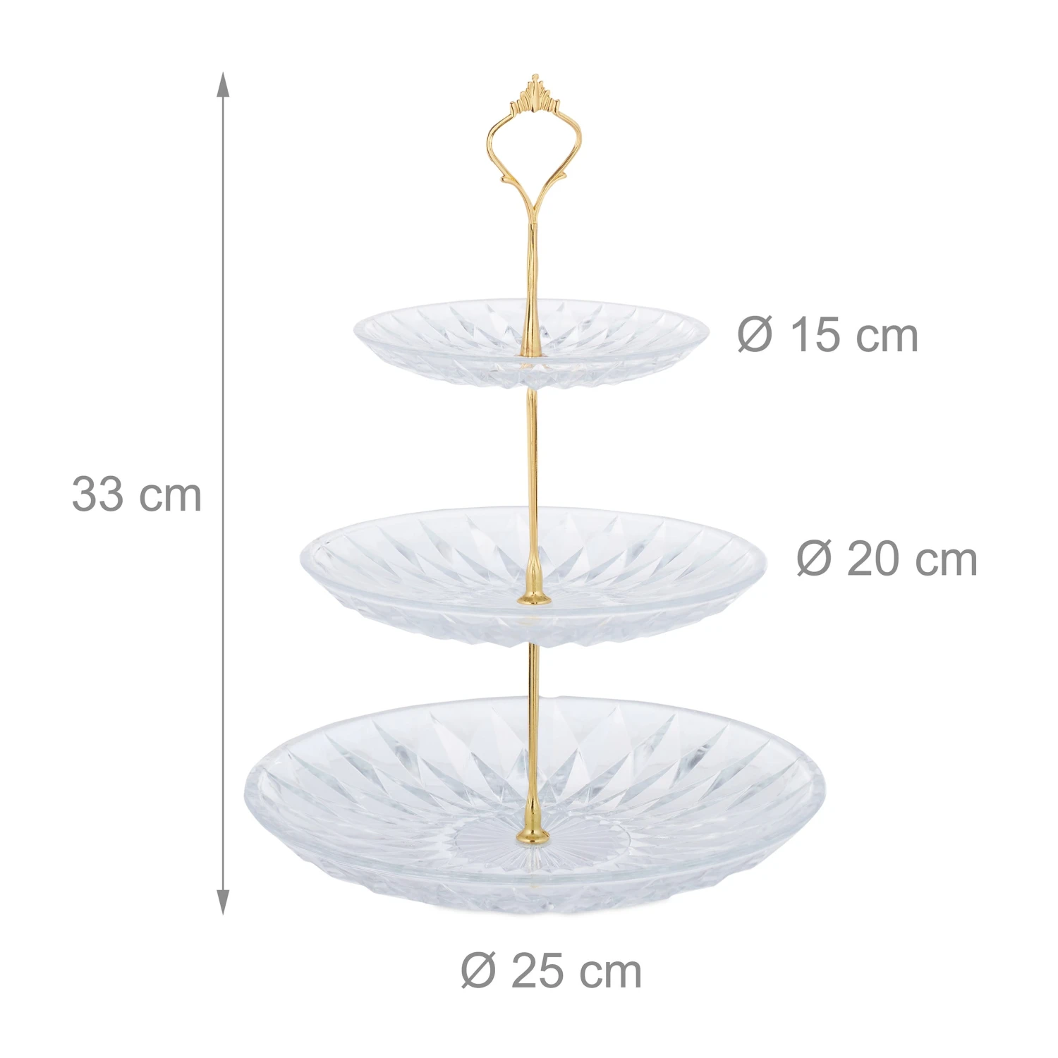 3-stöckige Servieretagere mit goldenem Griff