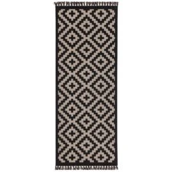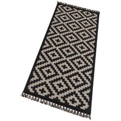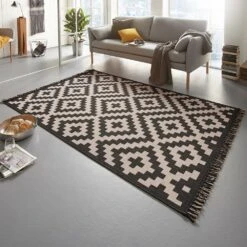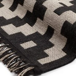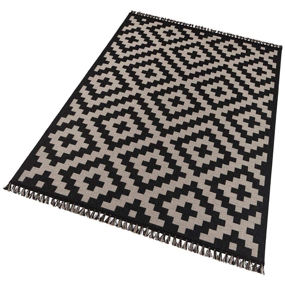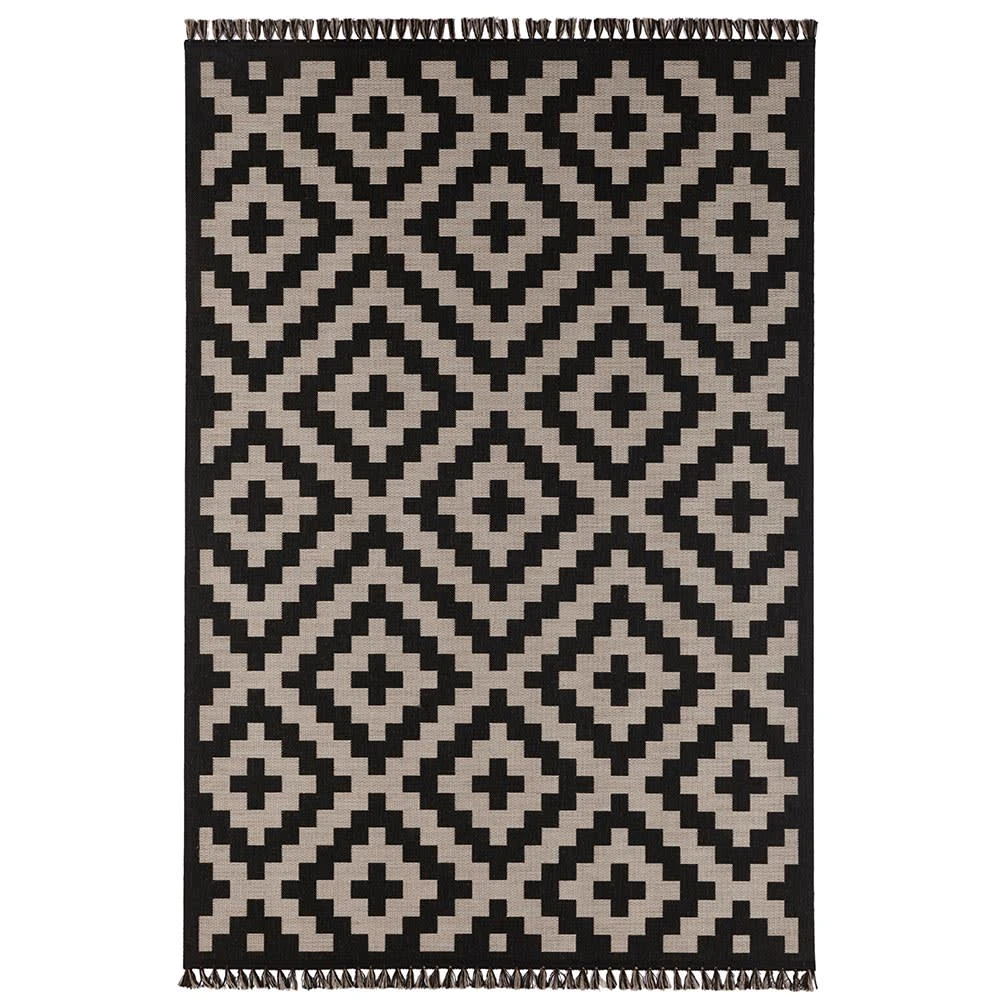 Flachgewebe Teppich Fransen Stockholm Schwarz Naturfarben
