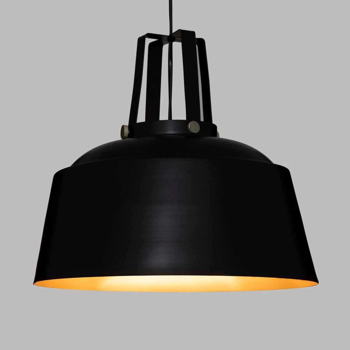 Pendelleuchte: Schwarze Deckenleuchte mit Lampenschirm aus Metall ist