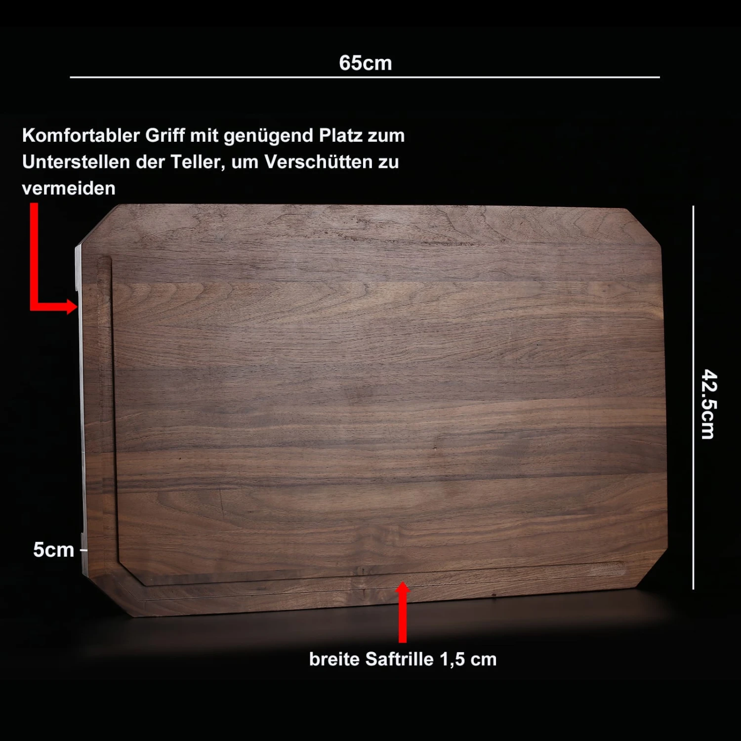 Das leicht zu bearbeitende, eng gemaserte Holz des Walnussbaums wird seit langem von Profiköchen wegen seiner Haltbarkeit, Stabilität und Schönheit geschätzt. Wenn Sie auf der Suche nach dem besten Holzschneidebrett sind, um Küchenarbeiten wie Hacken, Schneiden, Schneiden und Würfeln auszuführen, ist ein Schneidebrett aus Walnussholz die perfekte Wahl.
