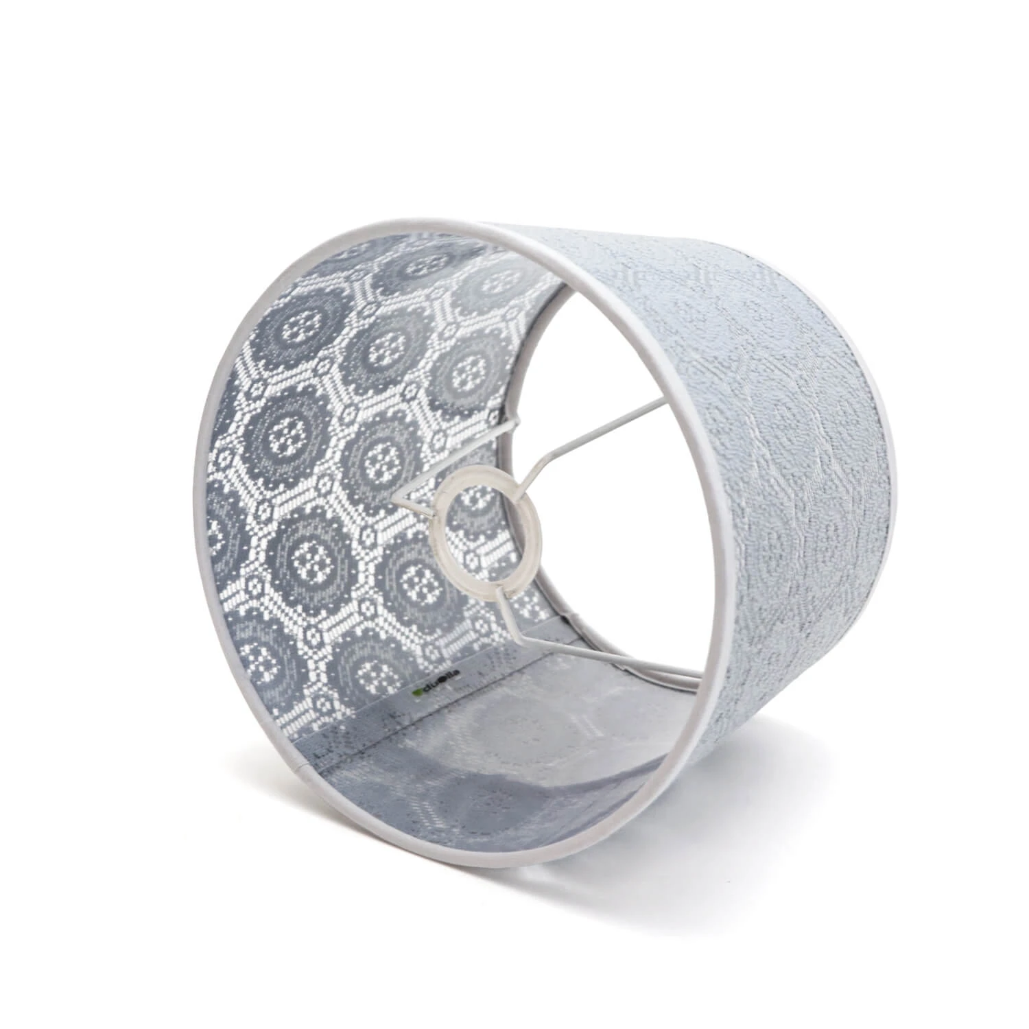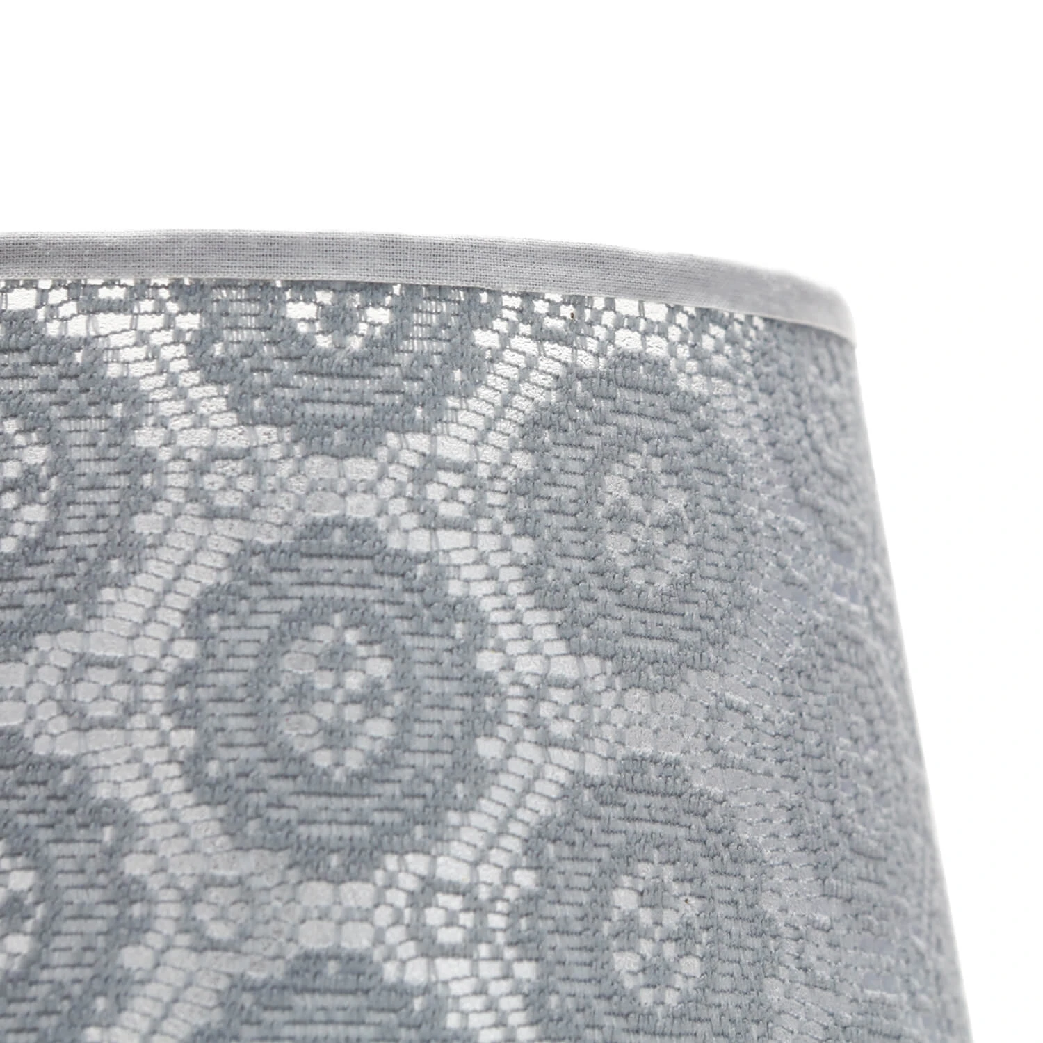 Fassung: 1x E14 bis 40W | Farbe: Grau | Material: gehäkelte Spitze | Spannung: 230V | Grauer Lampenschirm für gängige Tischleuchten und Nachttischlampen mit E14 Fassung | Variieren Sie bequem den Look ihrer Lampe – ohne diese komplett zu ersetzen | oben: Ø15cm; unten: Ø19,5cm; Höhe: 14cm | Gehäkelter Spitzenstoff wurde auf eine leichte Unterlage aus Kunststoff geklebt, was dem Schirm seine konische Form gibt | Die Halterung befindet sich mittig: ideal für einen Lampenfuß mit nach oben zeigendem Leuchtmittel | Perfekt im Schlafzimmer für eine Nachttischlampe oder im Wohnzimmer | Made in EU