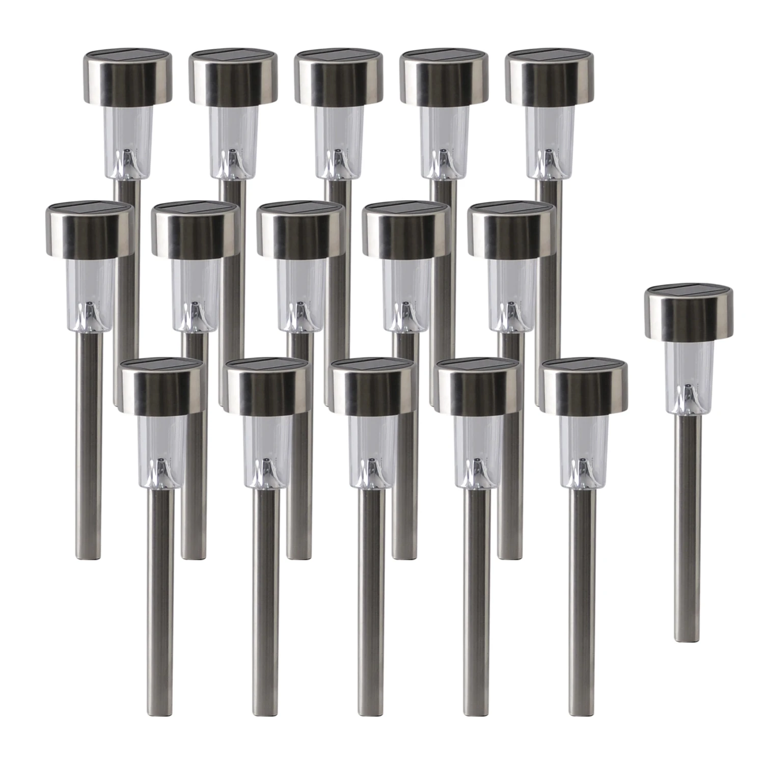 LED-Solar-Erdspieß 16er Set In Stahl-Blank