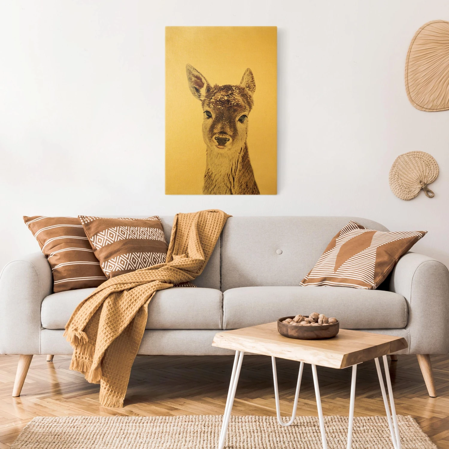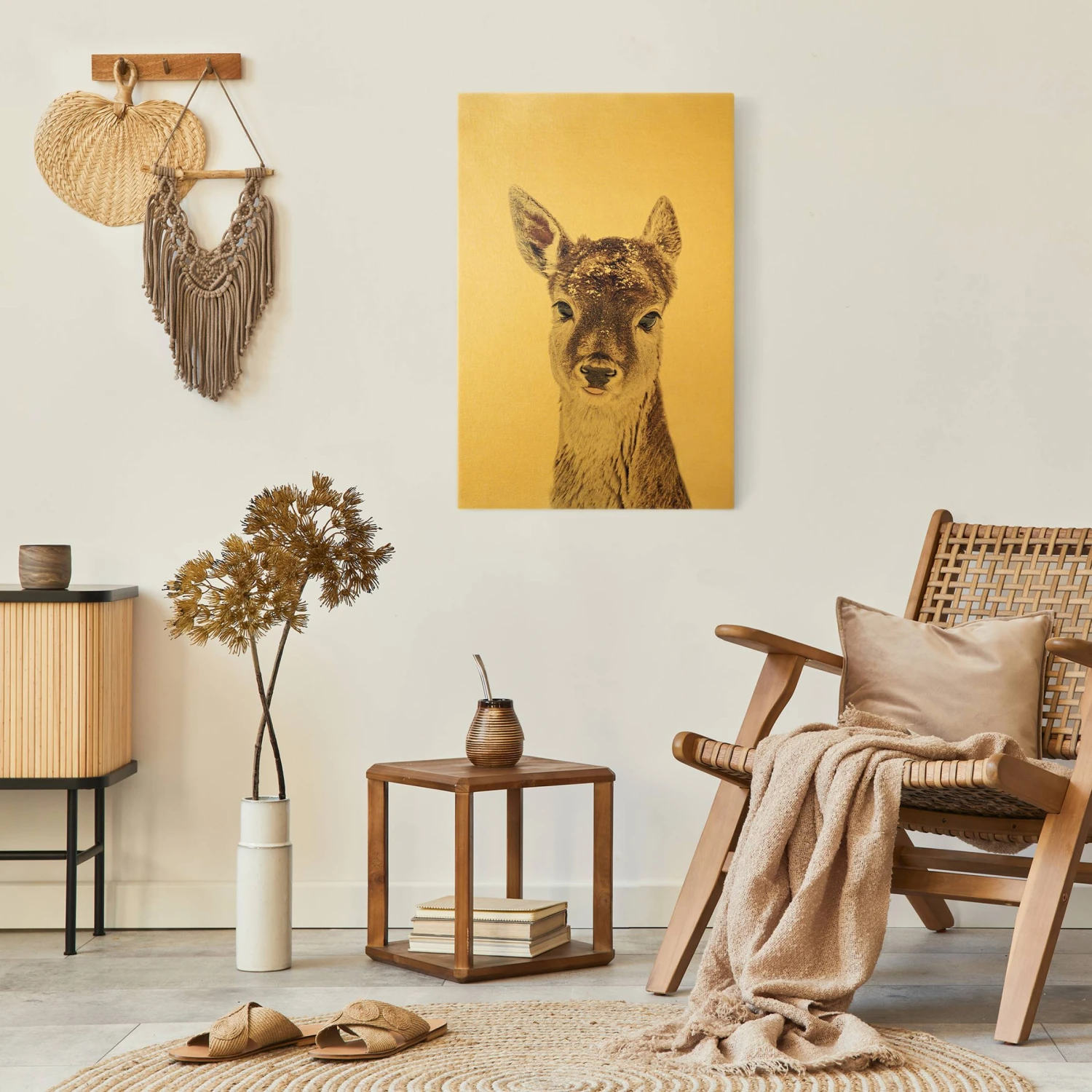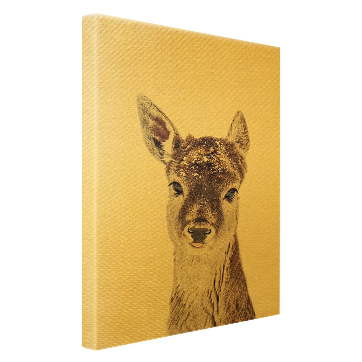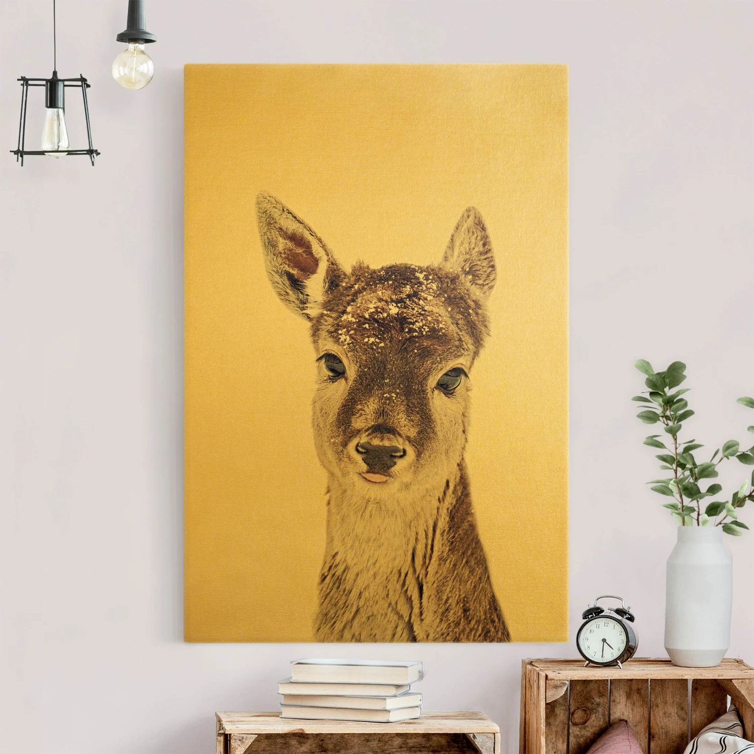 Leinwandbild Gold – Reh Kitz Portrait In Braun