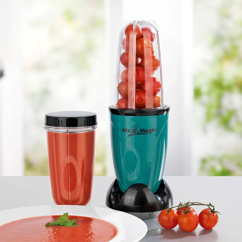 Smoothies, Cocktails, Speisen, Saucen und Dips sowie Drinks aller Art in Minutenschnelle zubereiten…Mit diesem „Mr. Magic“ ist das keine Zauberei! Der Fantasie beim Mixen und Mischen sind keine Grenzen gesetzt, denn der flinke Küchen-Magier entsaftet, mixt, rührt, zerkleinert, mahlt, hackt, schlägt, püriert und liefert Ihnen sogar noch einen praktischen Becher zum Aufbewahren gleich mit!