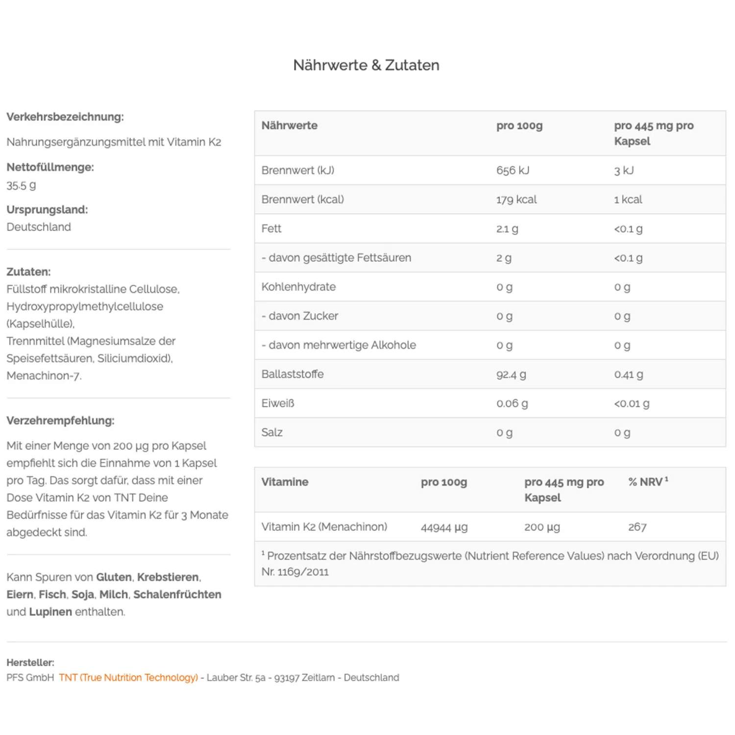 – TNT Vitamin K2: Verwendung der hochwertigen MK-7 Form von Kappa.
