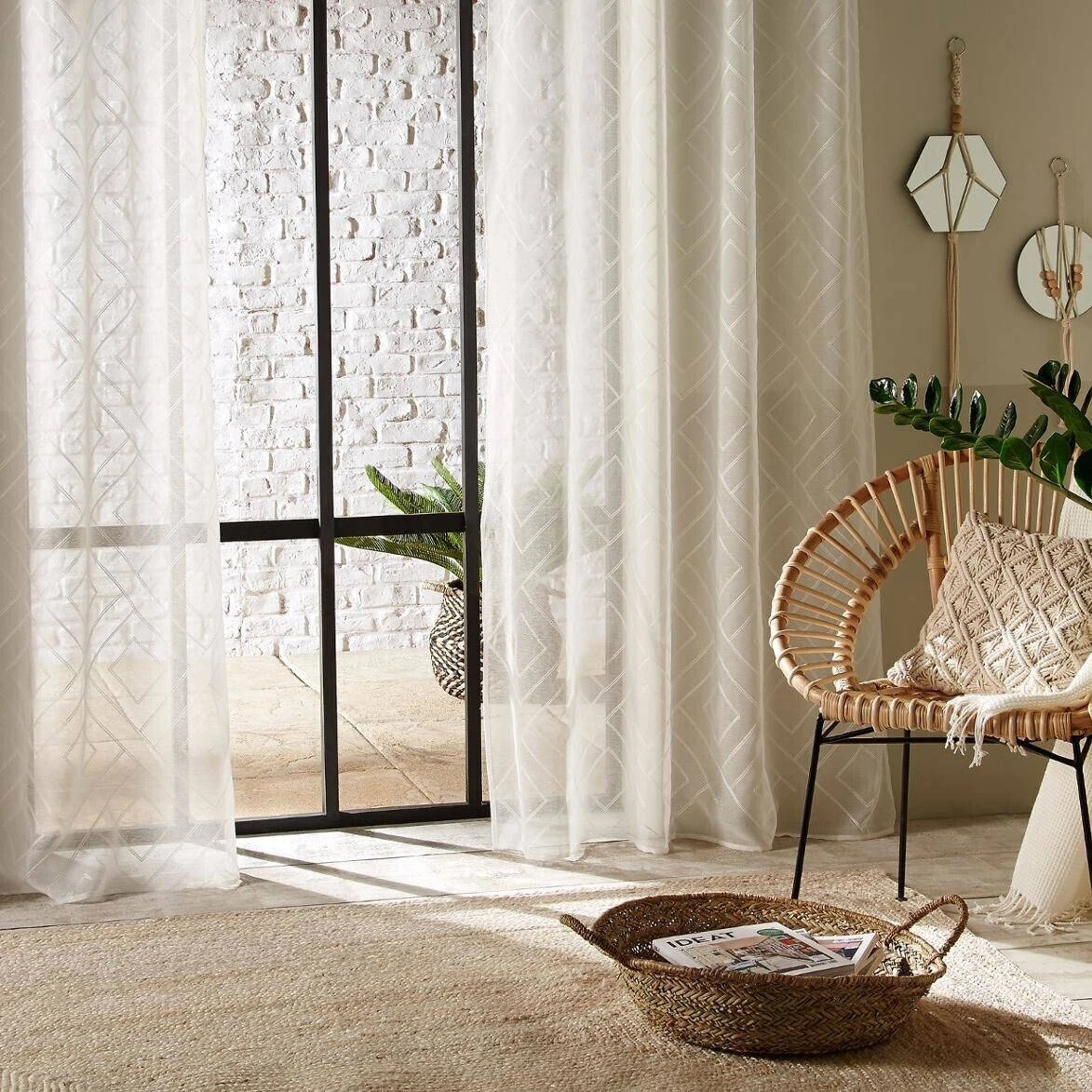 ein schöner Fenstervorhang mit einem geometrischen Muster,