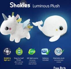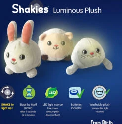 Sammeln Sie die entzückenden leuchtenden Plüschtiere von Pabobo! Einfach nur schütteln und schon leuchtet Rabbit, der plüschige Hase. Stoppt automatisch nach 5 Sekunden oder 5 Minuten. Die Leuchteinheit ist herausnehmbar und der Plüschteil kann bei 30°C gewaschen werden.