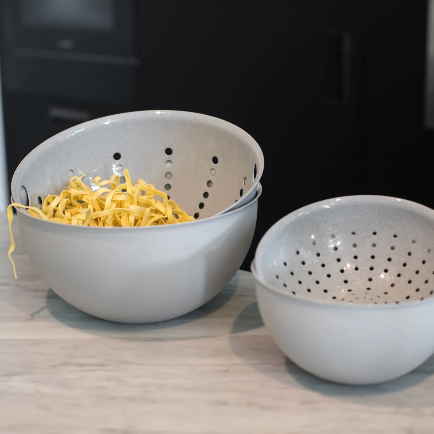 Skandinavisches Design für jeden Tag. Der puristischen Schüsselform liegt ein Kugelabschnitt zugrunde und damit sie nicht einfach wegrollt, hat der Boden eine Innenwölbung für absolutes Stehvermögen. Besonders praktisch ist die Rundum-Gießkante für Schütten ohne Kleckern. Die dazugehörige Seihe PALSBY L lässt sich passgenau in die Schüssel einhängen, so können Salatblätter oder Nudeln in Ruhe abtropfen. •formschönes Basic für jeden Tag•hochglänzende Innenfläche•leicht zu reinigen•stapelbar•Volumen: 5 l•100% CO2-neutral KOZIOL ORGANIC