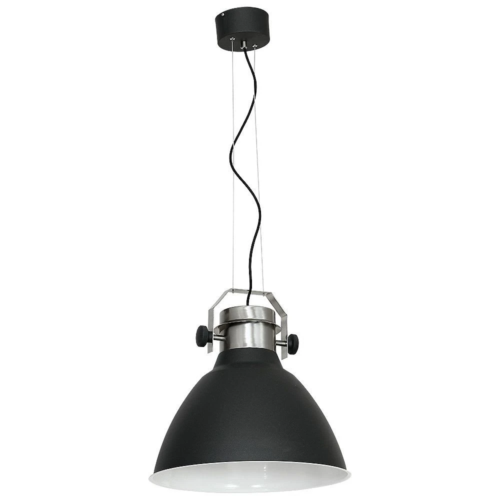 Fassung: E27 bis 60 Watt | Farbe: Schwarz, silber | Material: Metall | Spannung: 230V | Spritzschutzklasse:IP20 | Hängeleuchte im Industrie Stil | elegante und moderne Stahlseilaufhängung | Rund geformte Leuchte | Kelchartig geformter Schirm