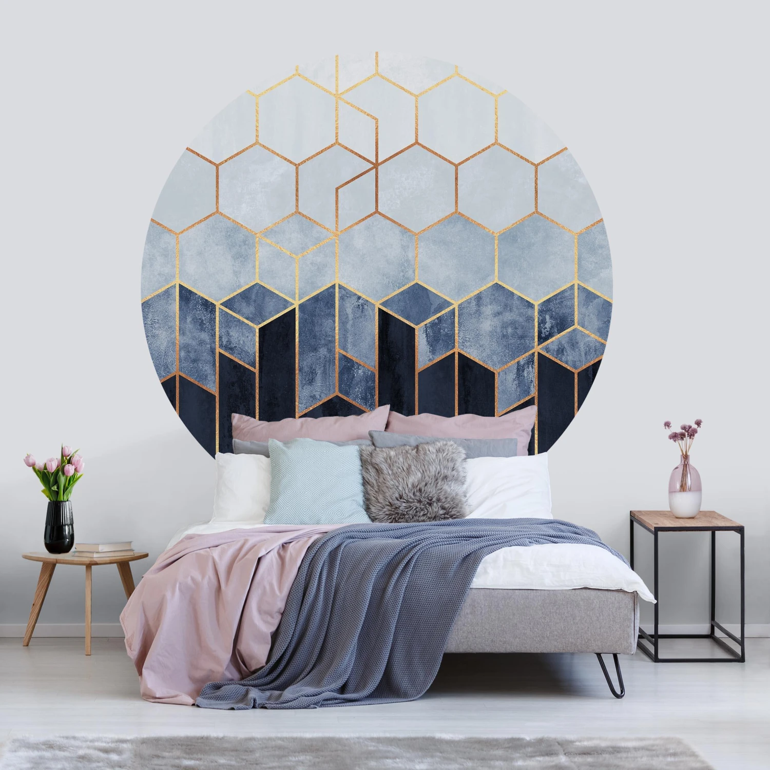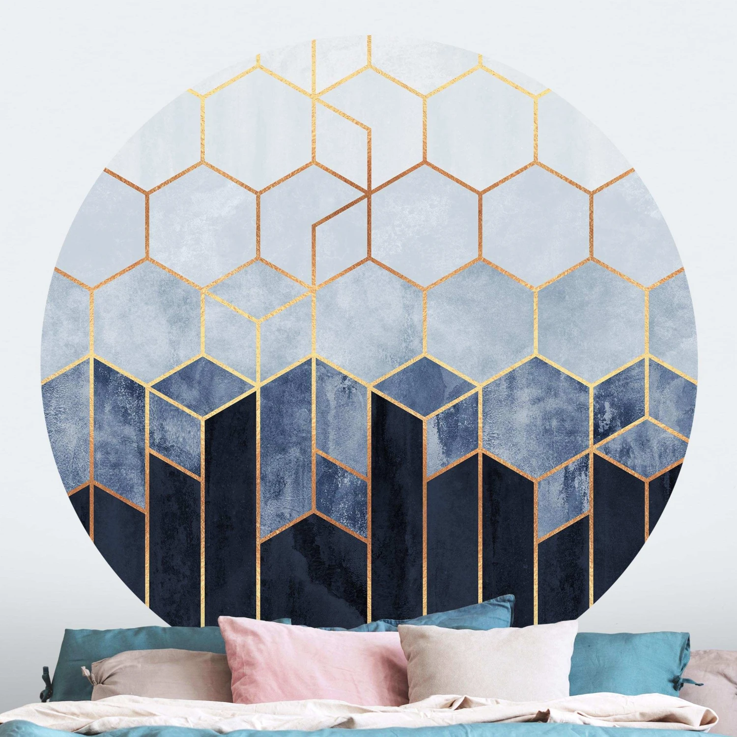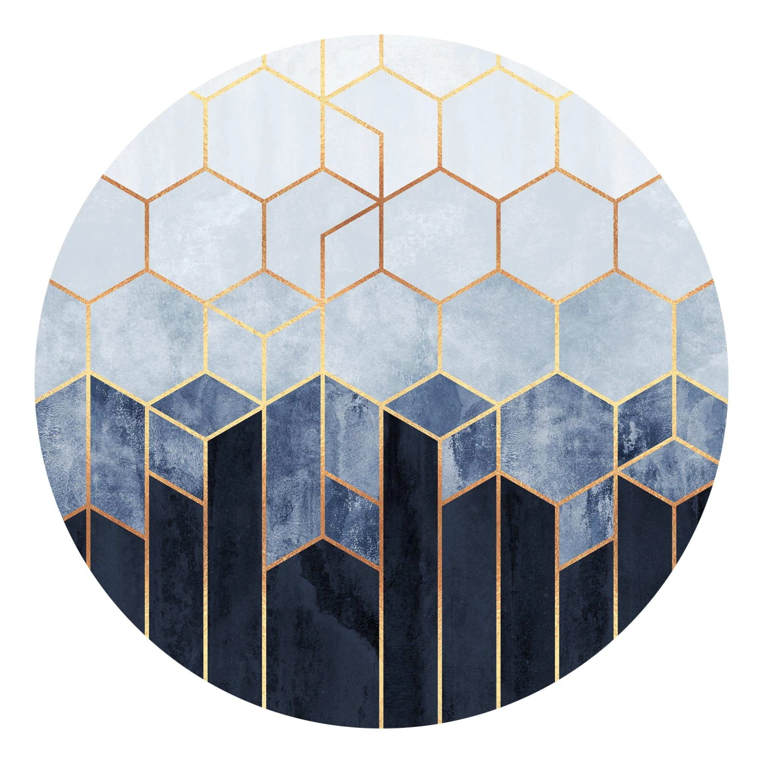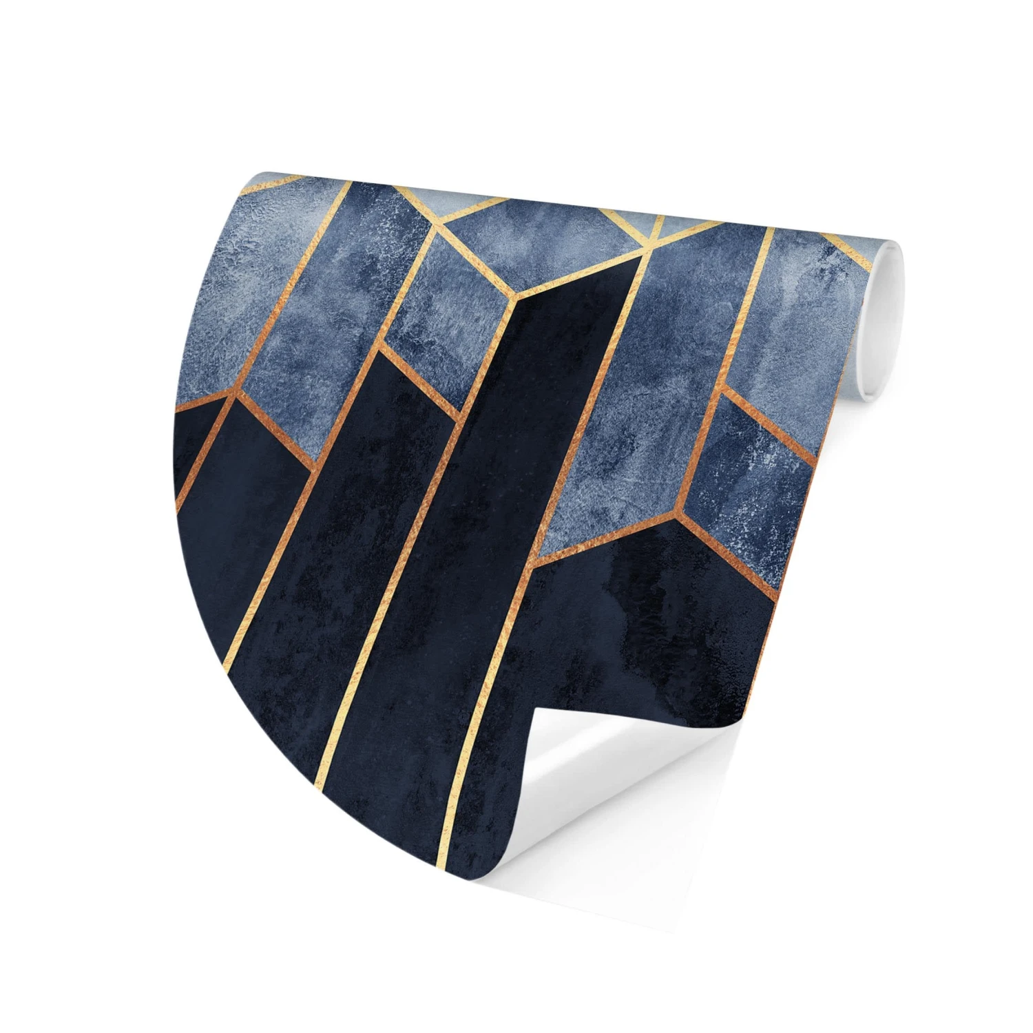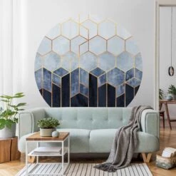 Runde Tapete – E. Fredriksson – Goldene Sechsecke Blau Weiß In Blau