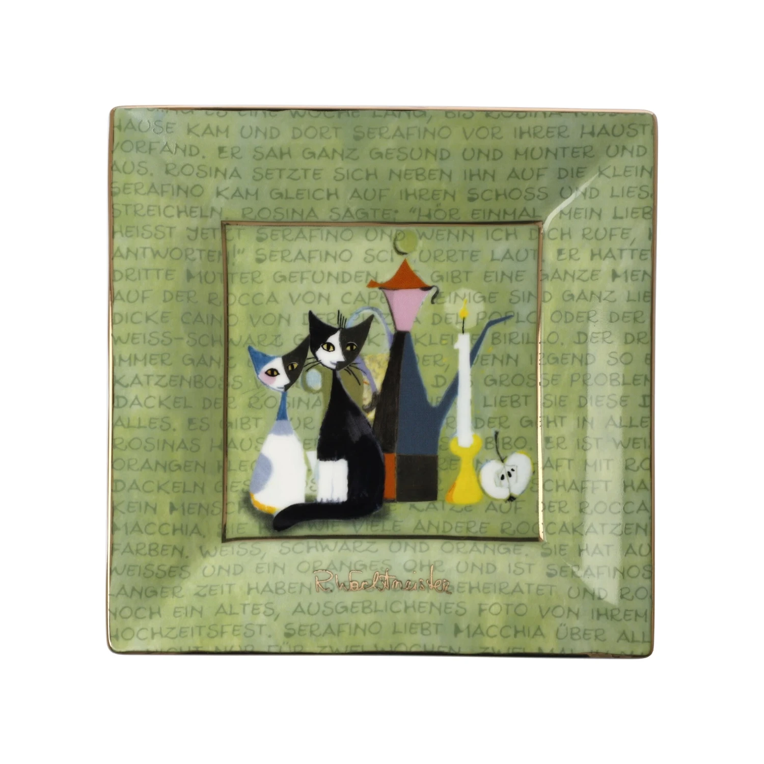 Porzellan und feinstem Bone China und mit Echtgold-Dekor veredelt, bereichert in diesem Jahr mit Wanduhr, Künstlerbecher, Espressotasse und weiteren nützlichen Artikeln für den täglichen Gebrauch die Wohnaccessoires.Schale – La Storia di Serafino