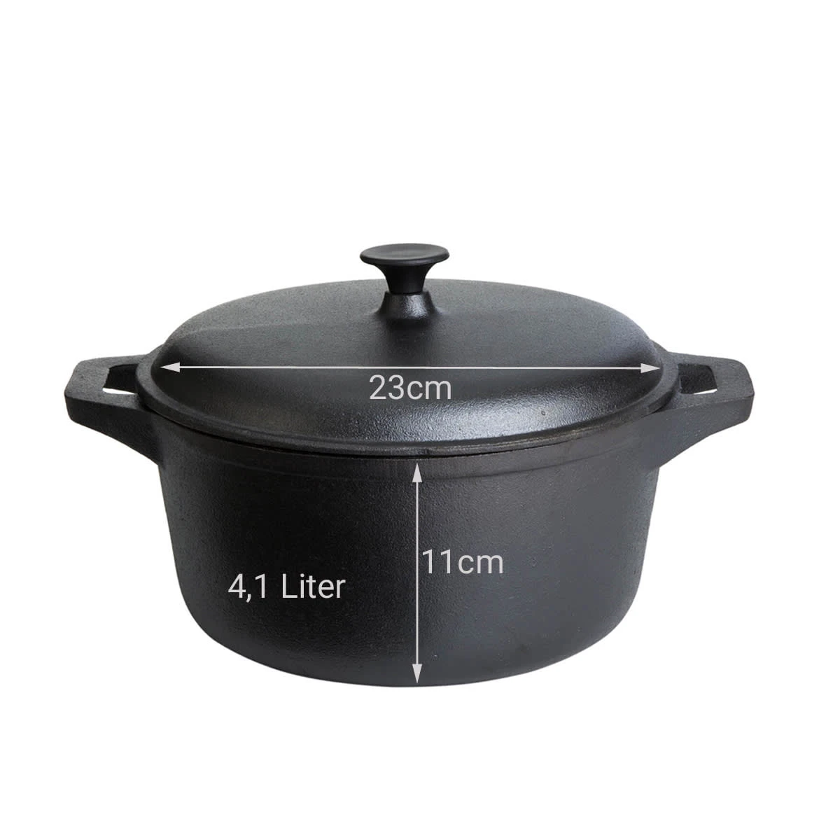 Gusstopf mit Deckel – Feuertopf – Gusseisen- D: 24cm – mit 2 Henkeln – 4,1Liter