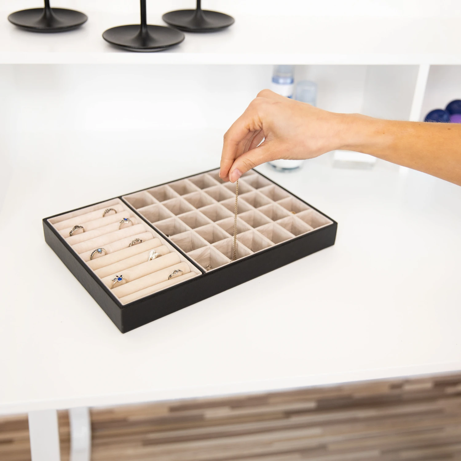 • Platz für Ringe, Ketten, Ohrringe und Armbänder