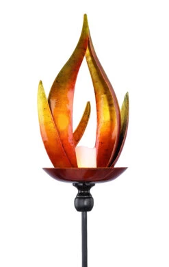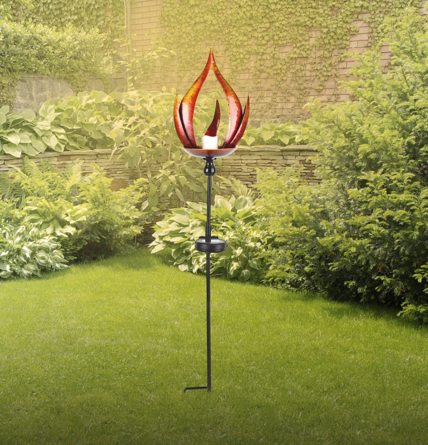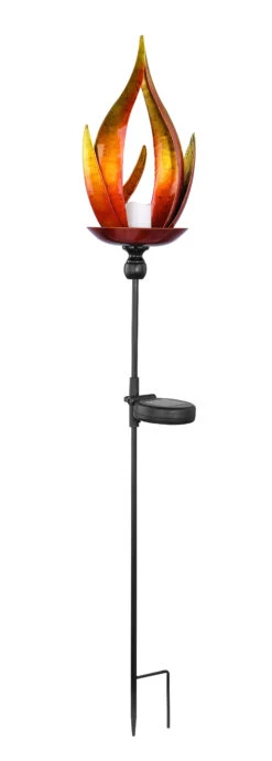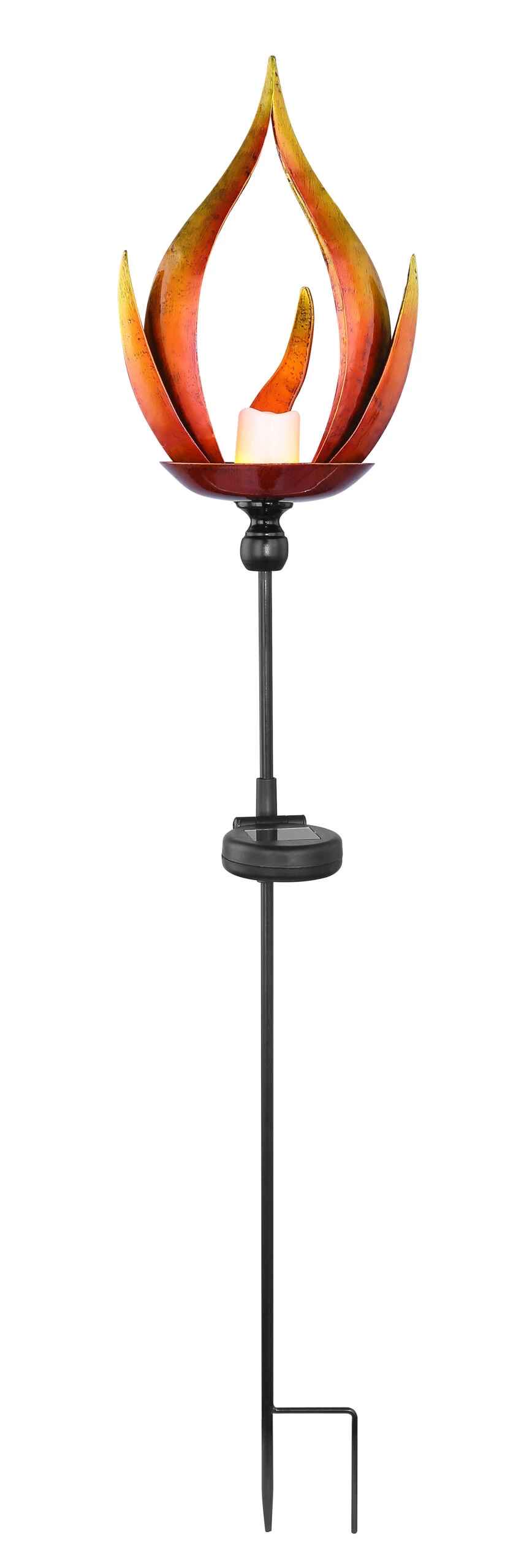 Solarleuchte Metall schwarz, Kunststoff, Akku inkludiert AA 300mAh 1.2V, IP44, Lackierung Flammenoptik, LED flackert, ø: 180mm, H: 930mm, inkl. 10x LED 0.1W 3V, 1800K, gelb