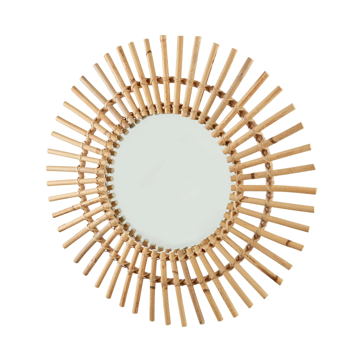 Ein bisschen Ibiza-Flair für Ihre Wohnung: Der handgearbeitete Cottage Rattan Spiegel sonnenförmig spiegelt das mediterrane Lebensgefühl wider, sonnig und voller Natürlichkeit. Solche Boho-Akzente stehen Ihrem Flur und wirken ebenso dekorativ im Wohn- und Schlafbereich. Weitere Varianten erhältlich.