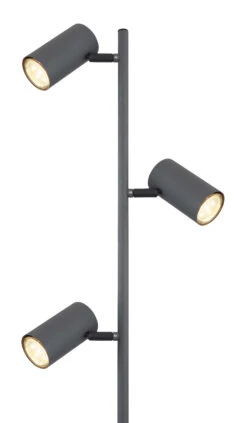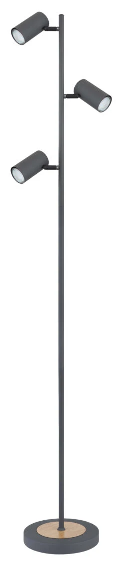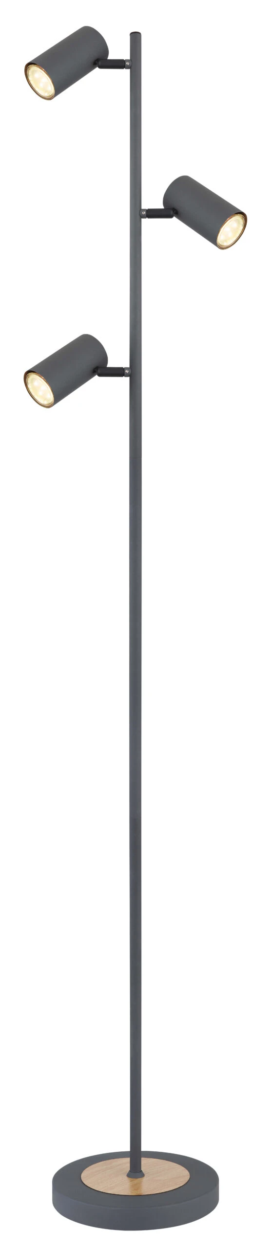 Stehleuchte Metall Graphit, Metall holzoptik, Metall Graphit, LxBxH: 250x230x1540mm, Kabellänge 1800mm, exkl. 3x GU10 LED 5W 230V