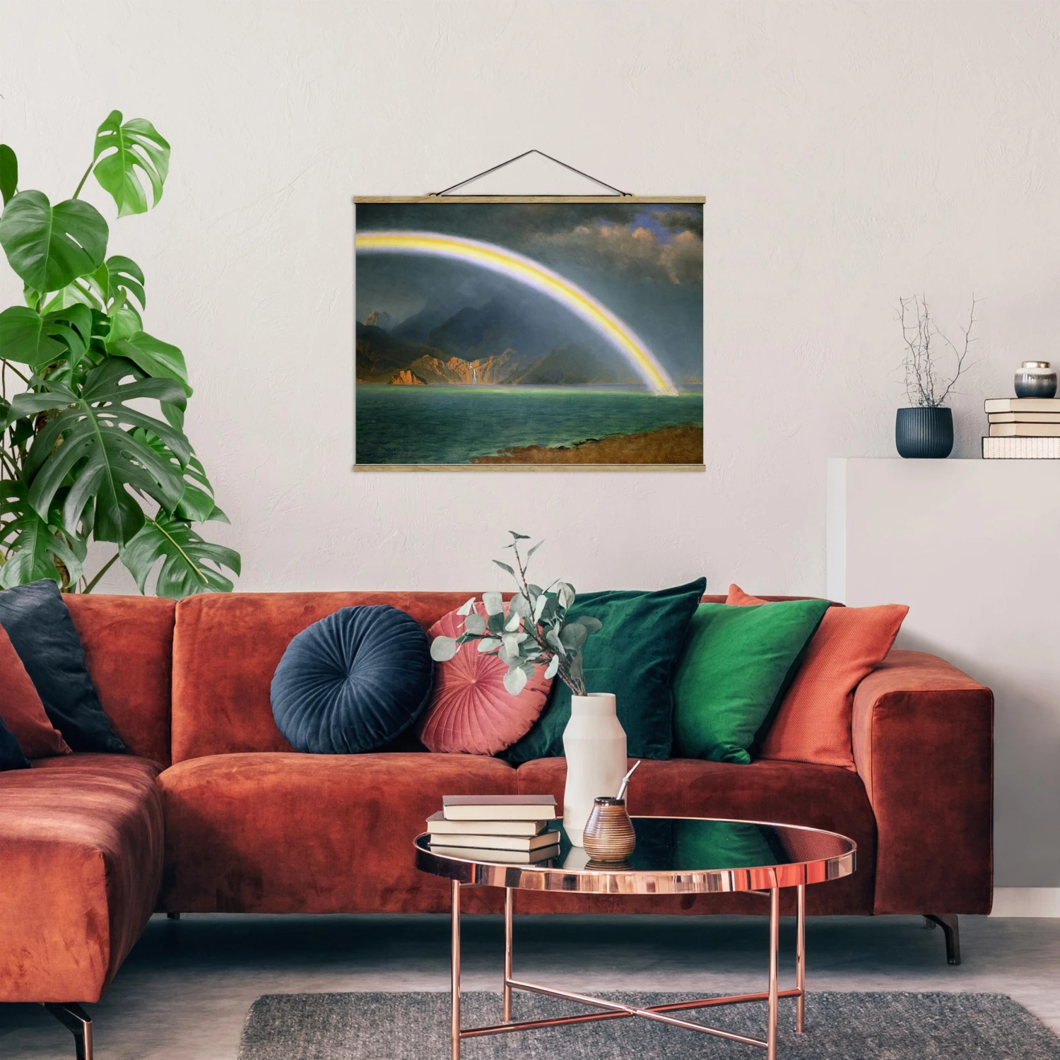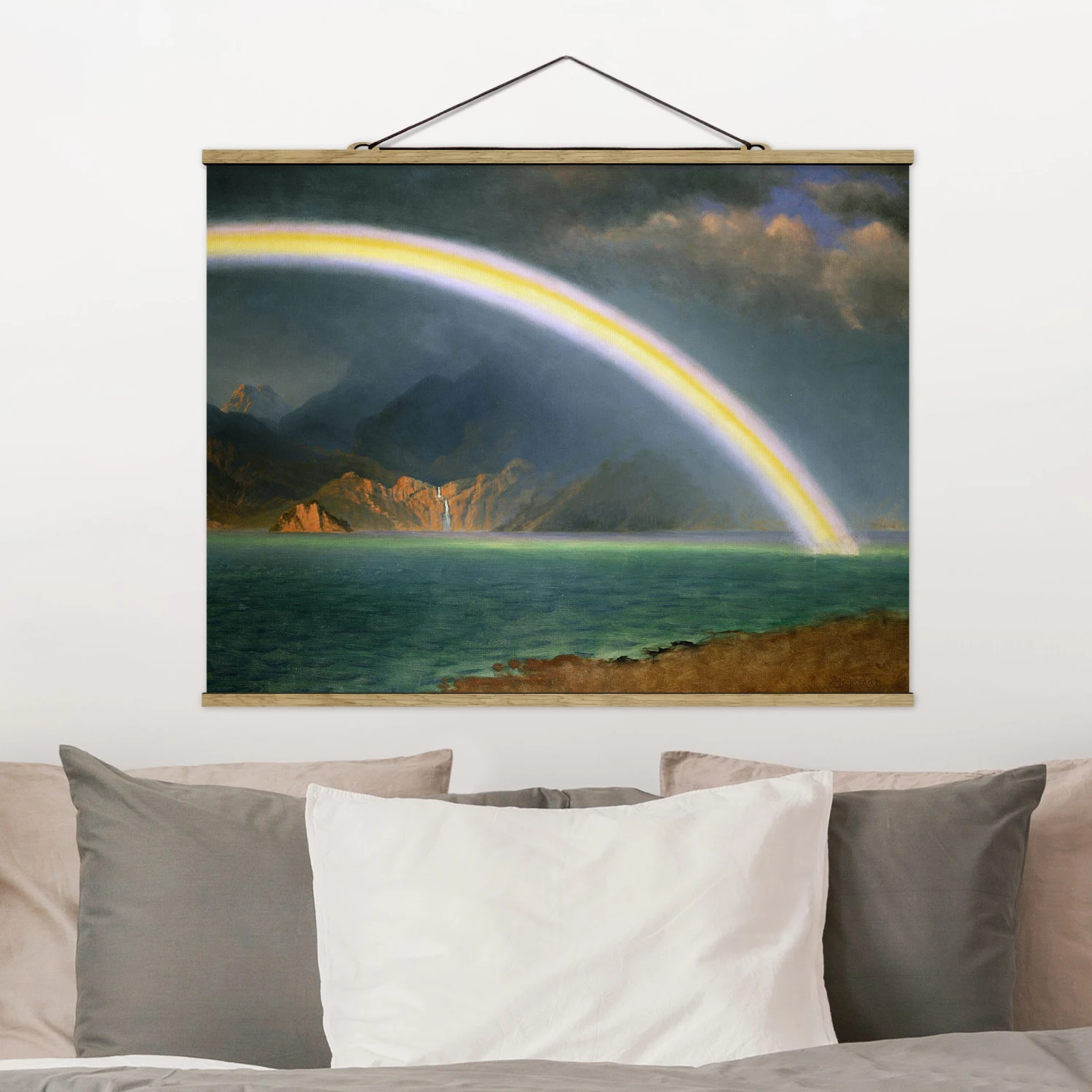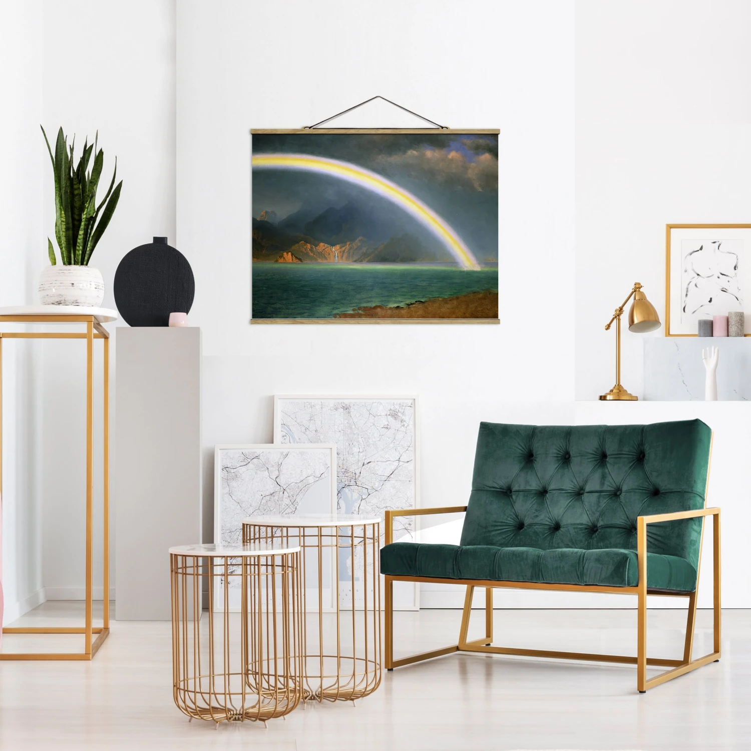 Stoffbild – A. Bierstadt – Regenbogen Jenny Lake In Petrol