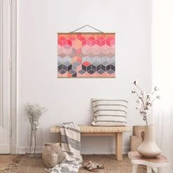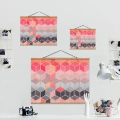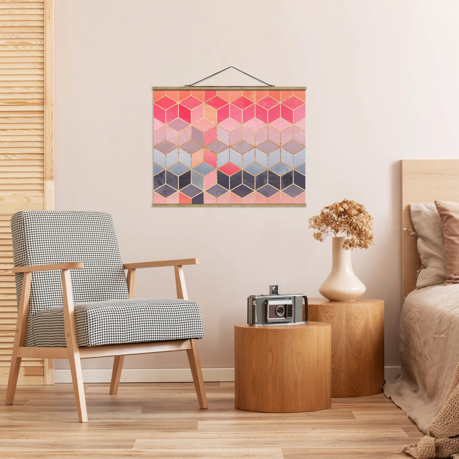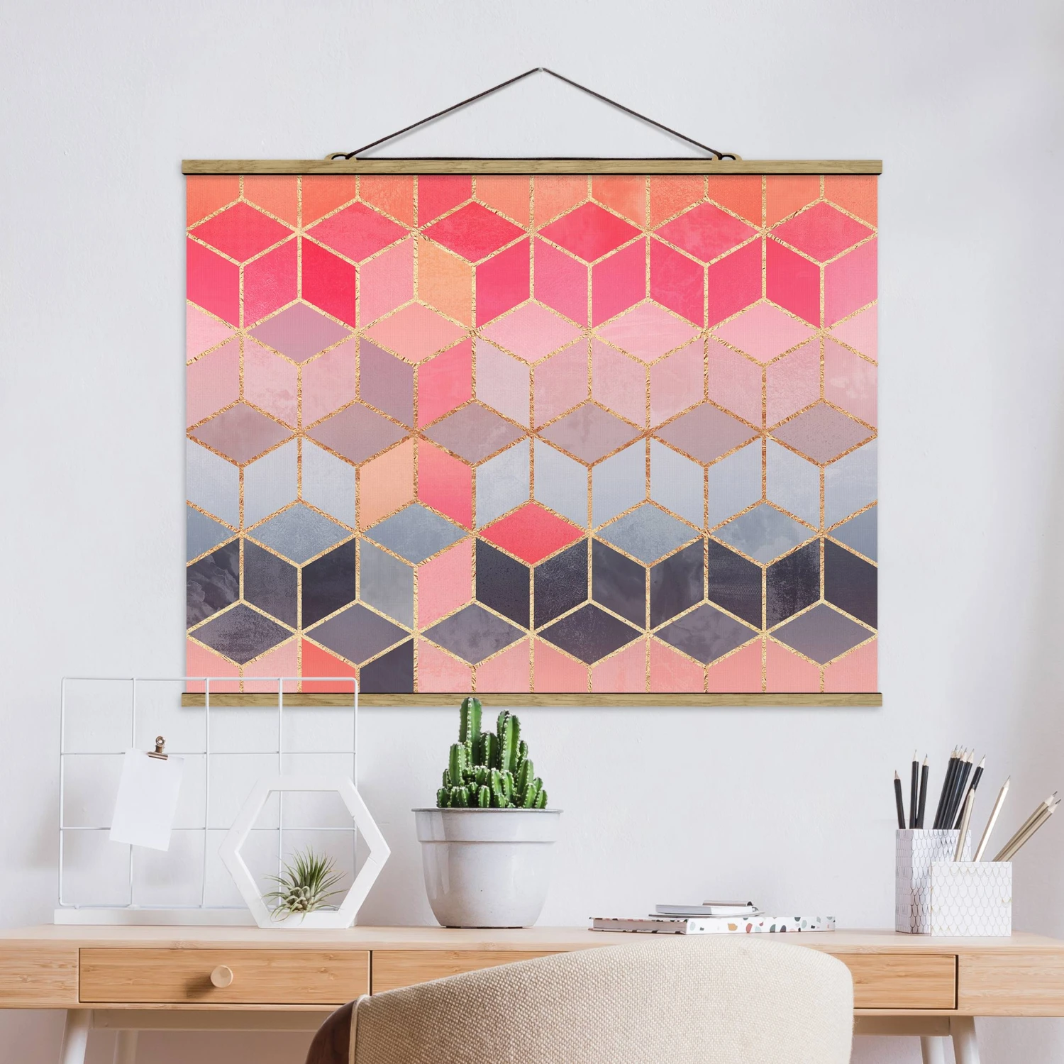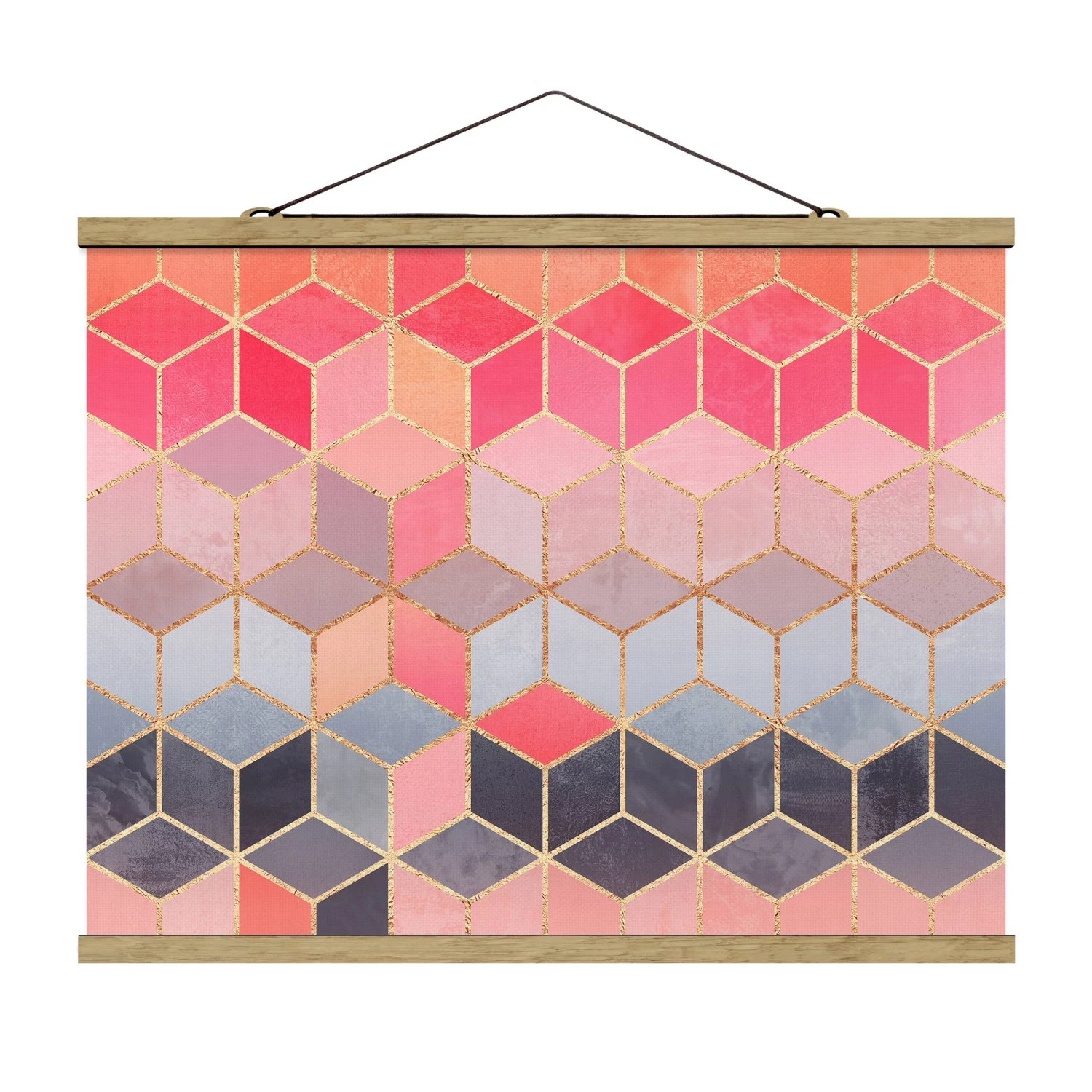Stoffbild – E. Fredriksson – Buntes Pastell Goldene Geometrie In Rosa