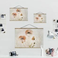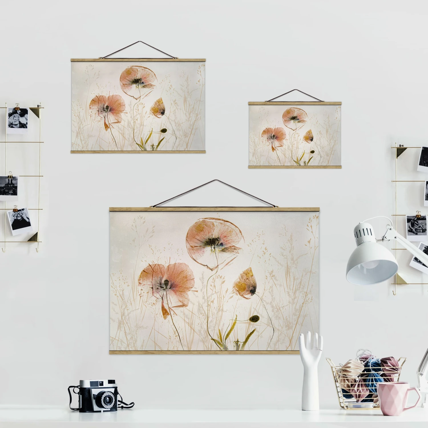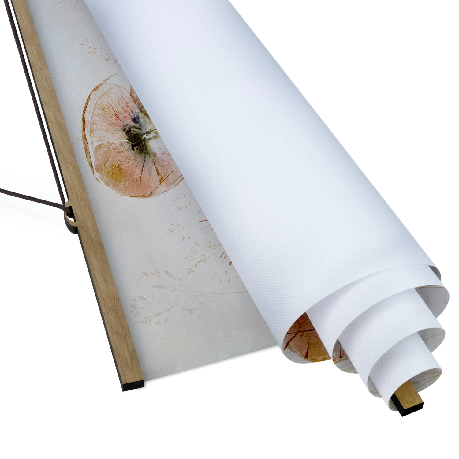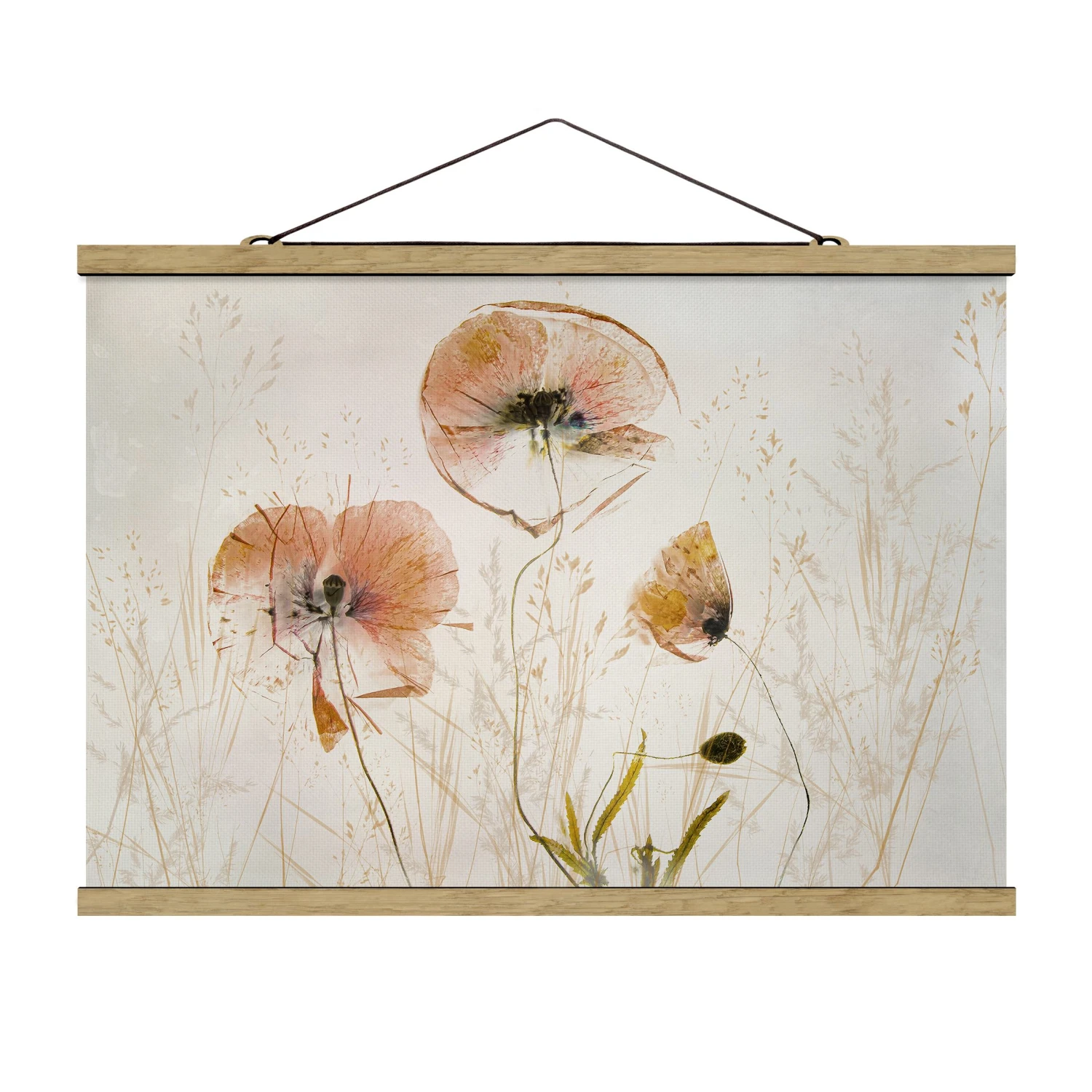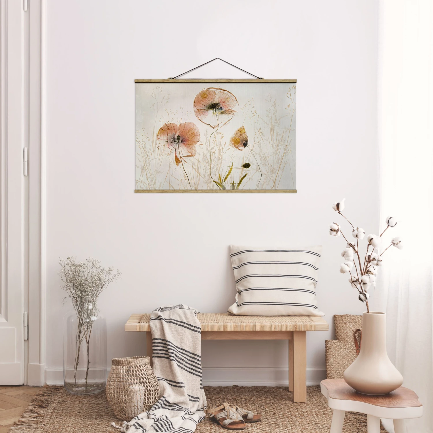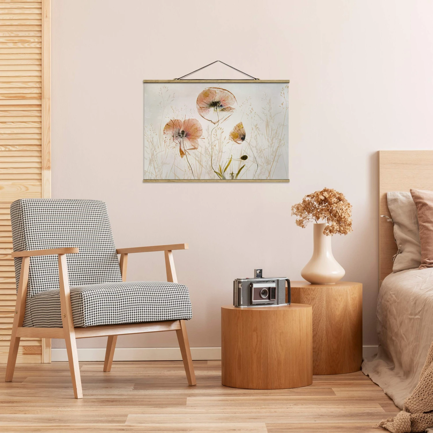 Stoffbild – Getrocknete Mohnblüten Mit Zarten Gräsern In Creme-Beige