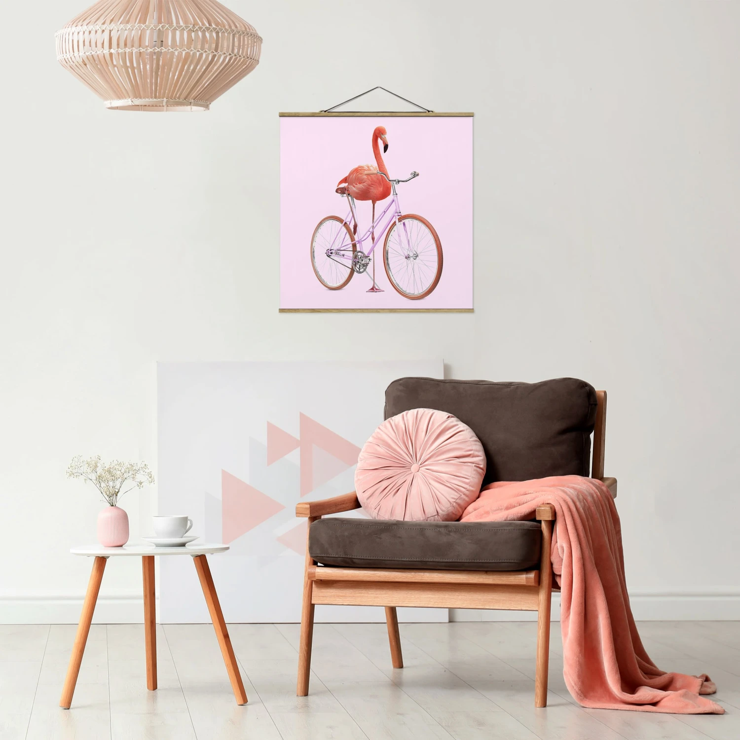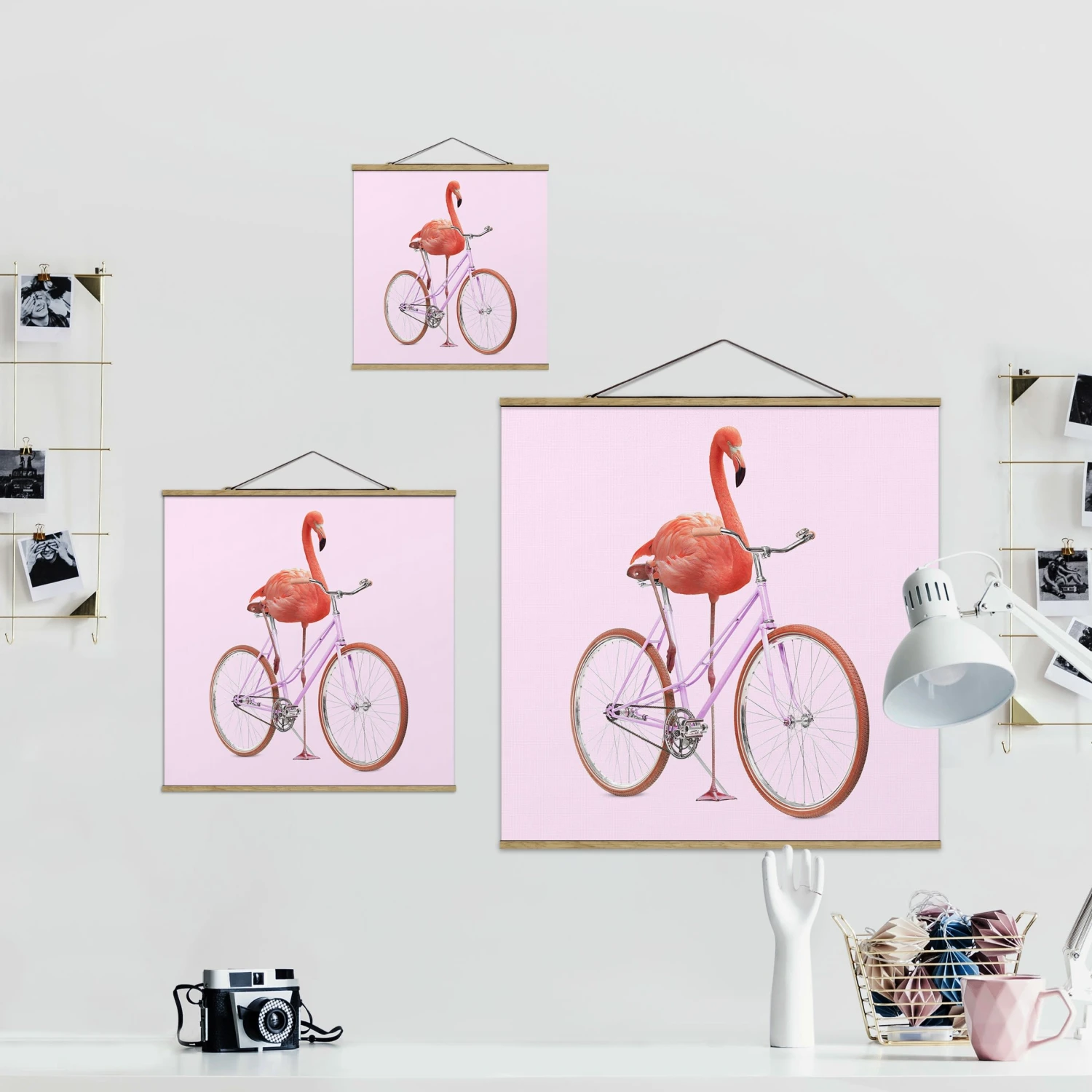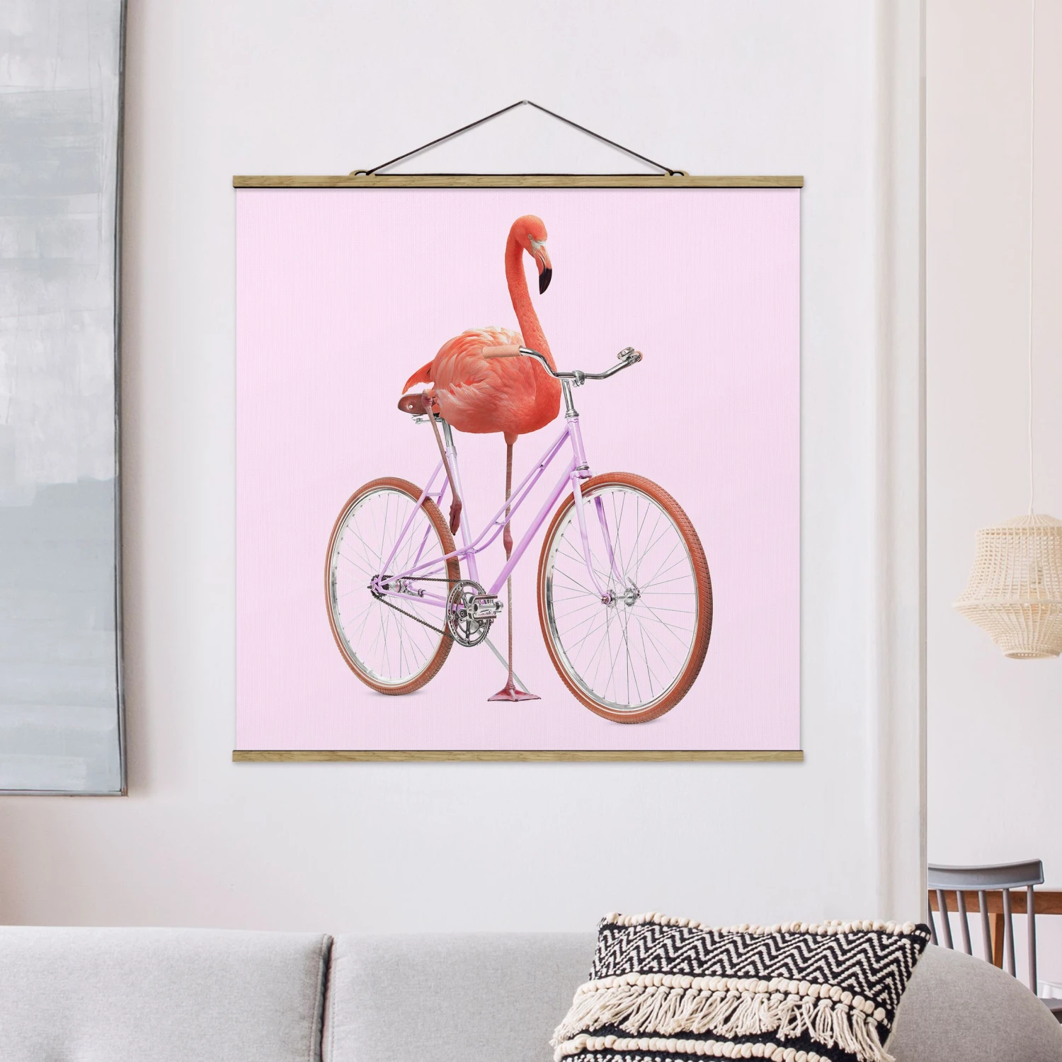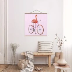 Stoffbild – Jonas Loose – Flamingo Mit Fahrrad In Rosa