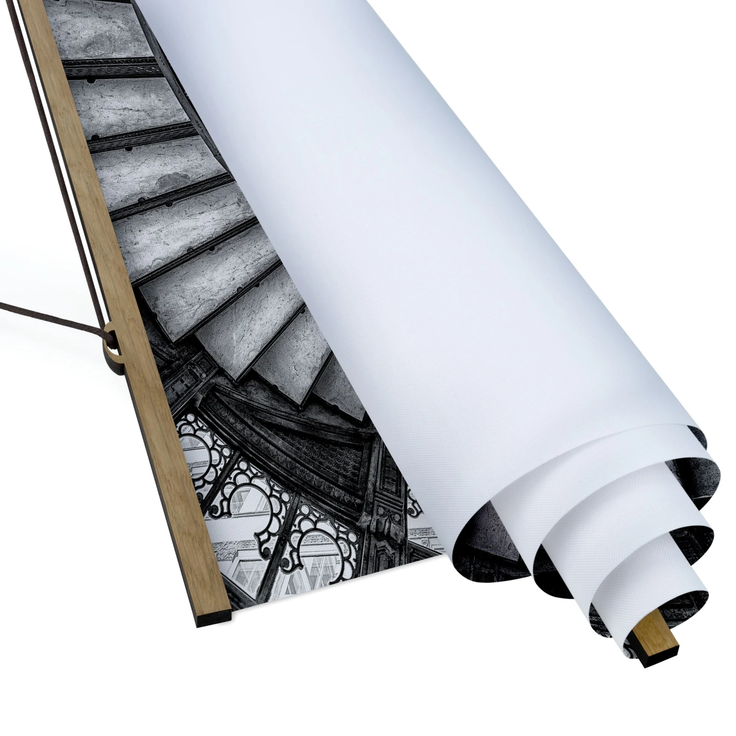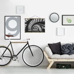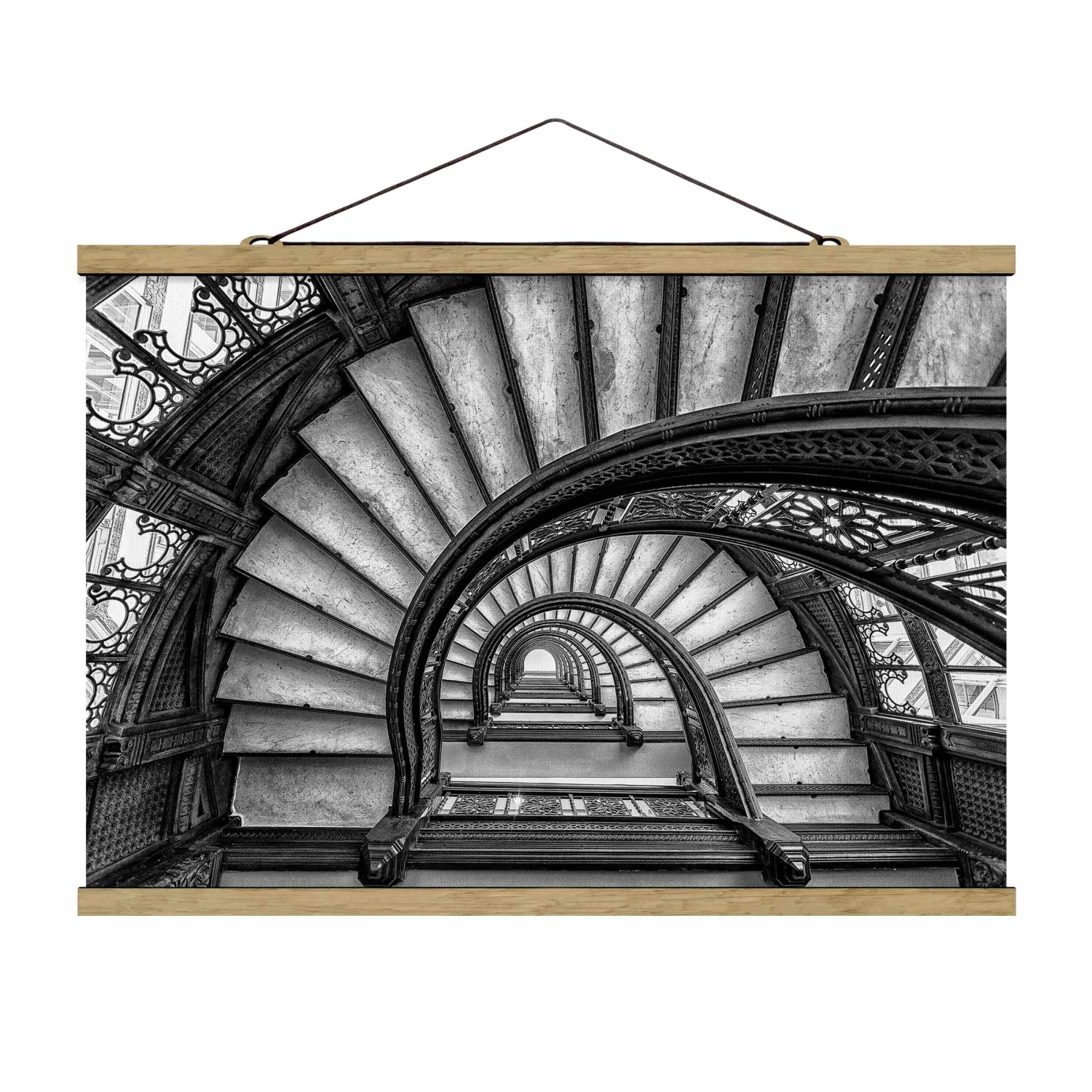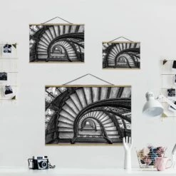Stoffbild Mit Posterleisten – Chicagoer Treppenhaus In Schwarz-Weiß