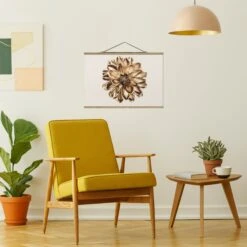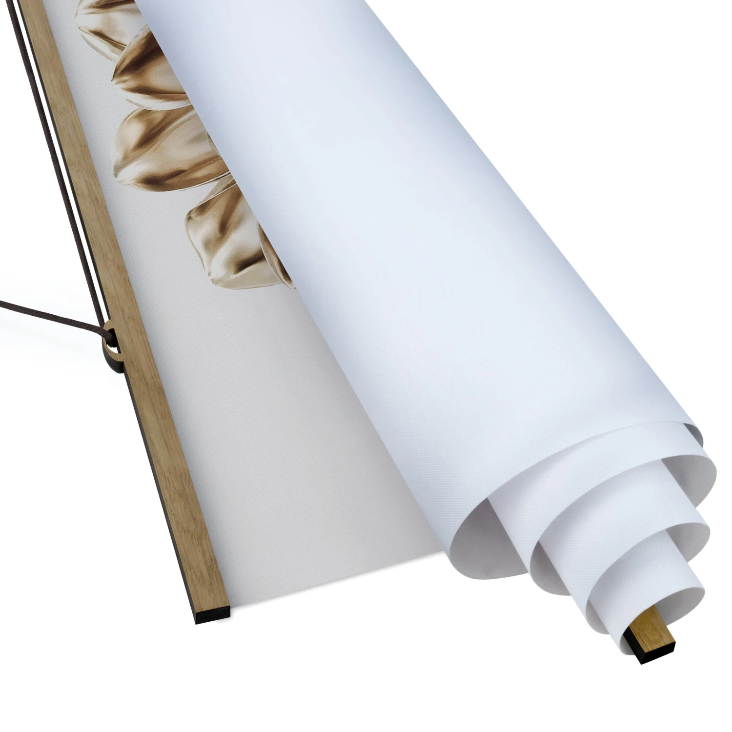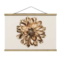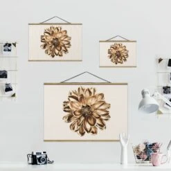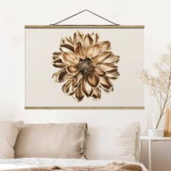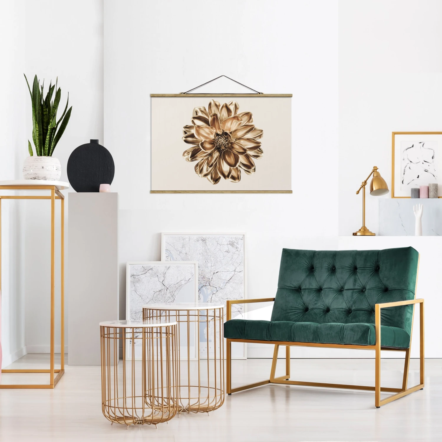 Stoffbild Mit Posterleisten – Dahlie Blume Gold Metallic In Gold