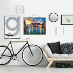 Stoffbild Mit Posterleisten – Sunset In Venice In Türkis