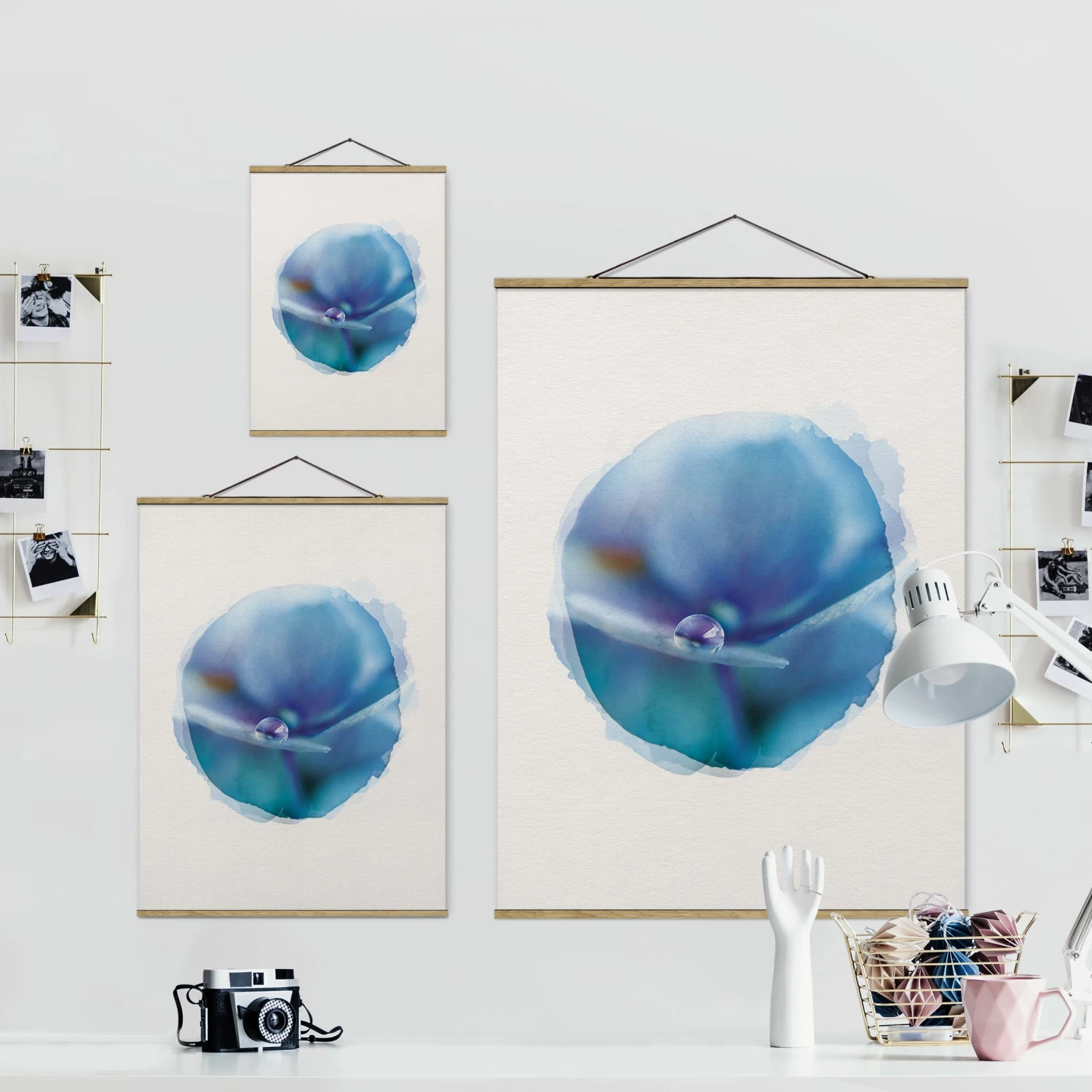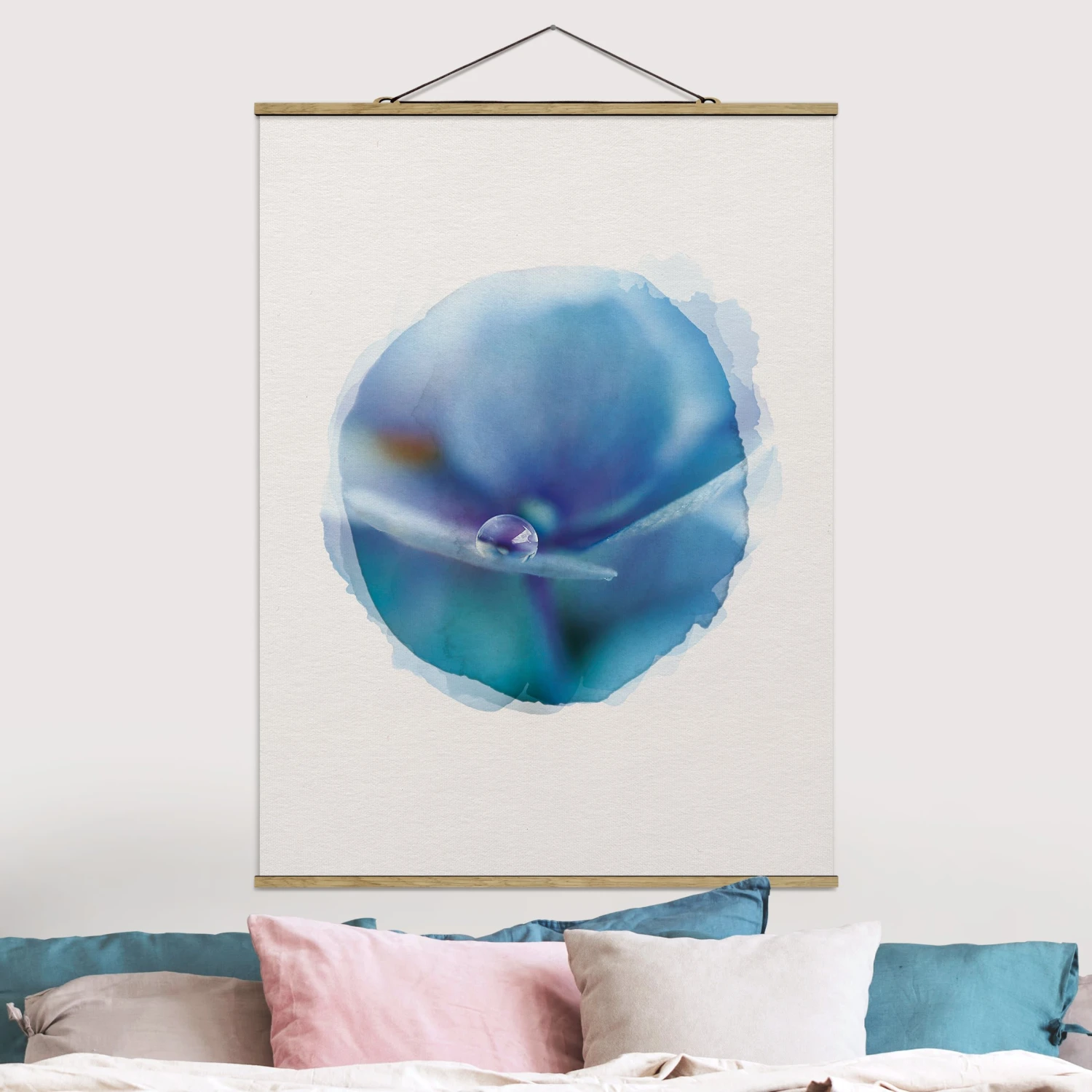 Stoffbild – Wasserfarben – Wassertropfen Hortensienblüte In Creme-Beige
