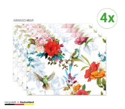 Tischsets I Platzsets Abwaschbar – Bunte Kolibris Mit Wildblumen – Aus Erstklassigem Vinyl (Kunststoff Ð BPA-frei) – 4 Stück – 44 X 32 Cm – Rutschfeste Tischdekoration