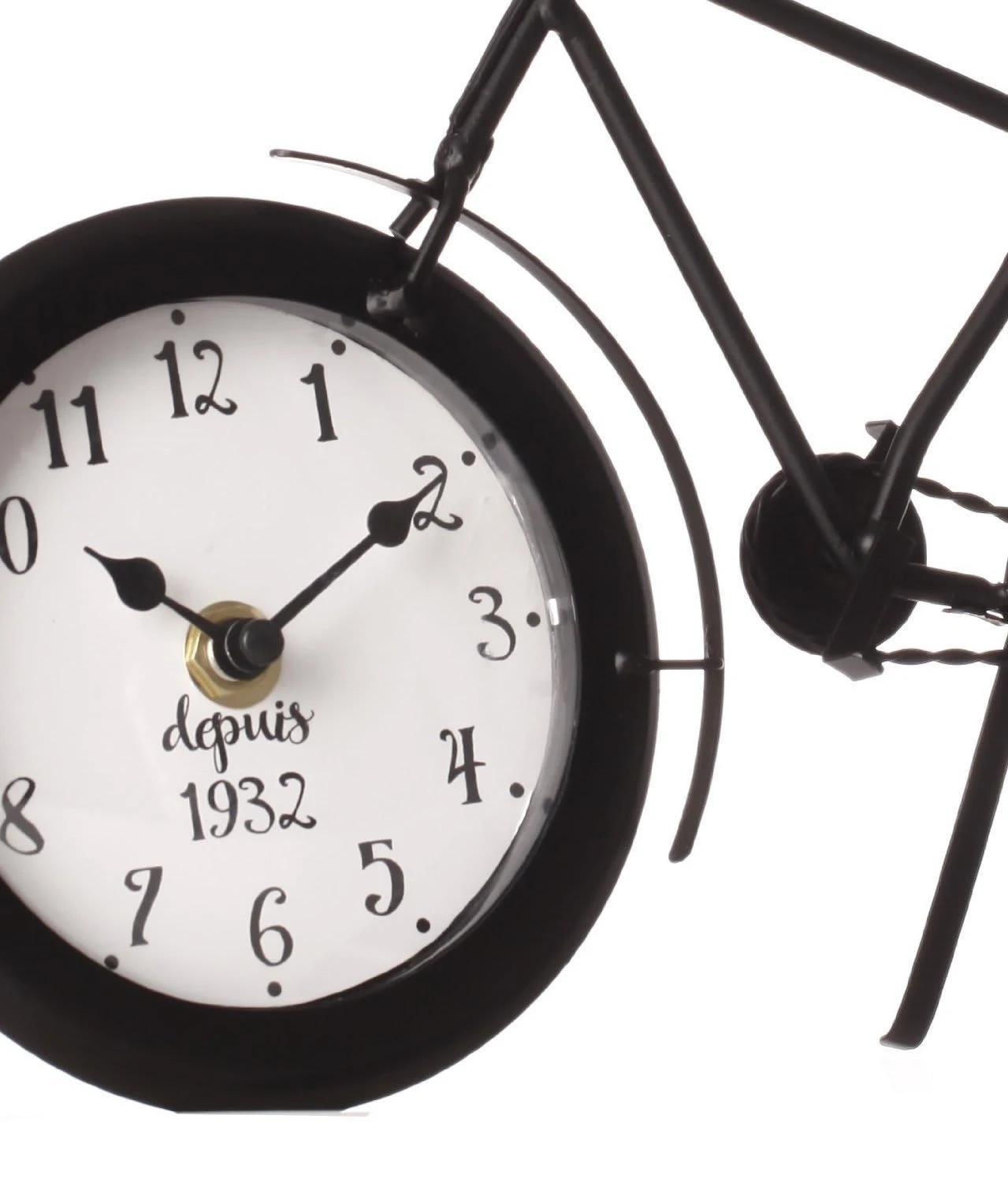 Fahrraduhr, Metall-Uhrenständer in Form eines Fahrrades, Vintage Uhren schmücken den Raum in Häusern seit Jahrhunderten. Richtig ausgewählte Uhr kann sogar das banalste Interieur verwandeln. Ein interessanter Vorschlag kann sich als Tischuhr erweisen, die eine ausgezeichnete Dekoration auf der Kommode, dem Schreibtisch oder auf dem Tisch sein wird.