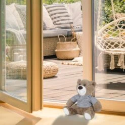 Dieser schöne Bodentürstopper in Form eines niedlichen Teddybären ist ideal geeignet, um unbeabsichtigtes Anschlagen oder Zuknallen der Türen zu verhindern. Durch die Schwere des mit Sand gefüllten Türhalters steht dieser stabil und sicher auf dem Boden. Dank seiner Höhe ist der Bodenstopper auch für höher gelegene Türen wie die Balkon- oder Terrassentür verwendbar. Der dekorative Türaufhalter aus weichem Stoff ist auch ideal fürs Kinderzimmer und kann jederzeit flexibel neu platziert werden.