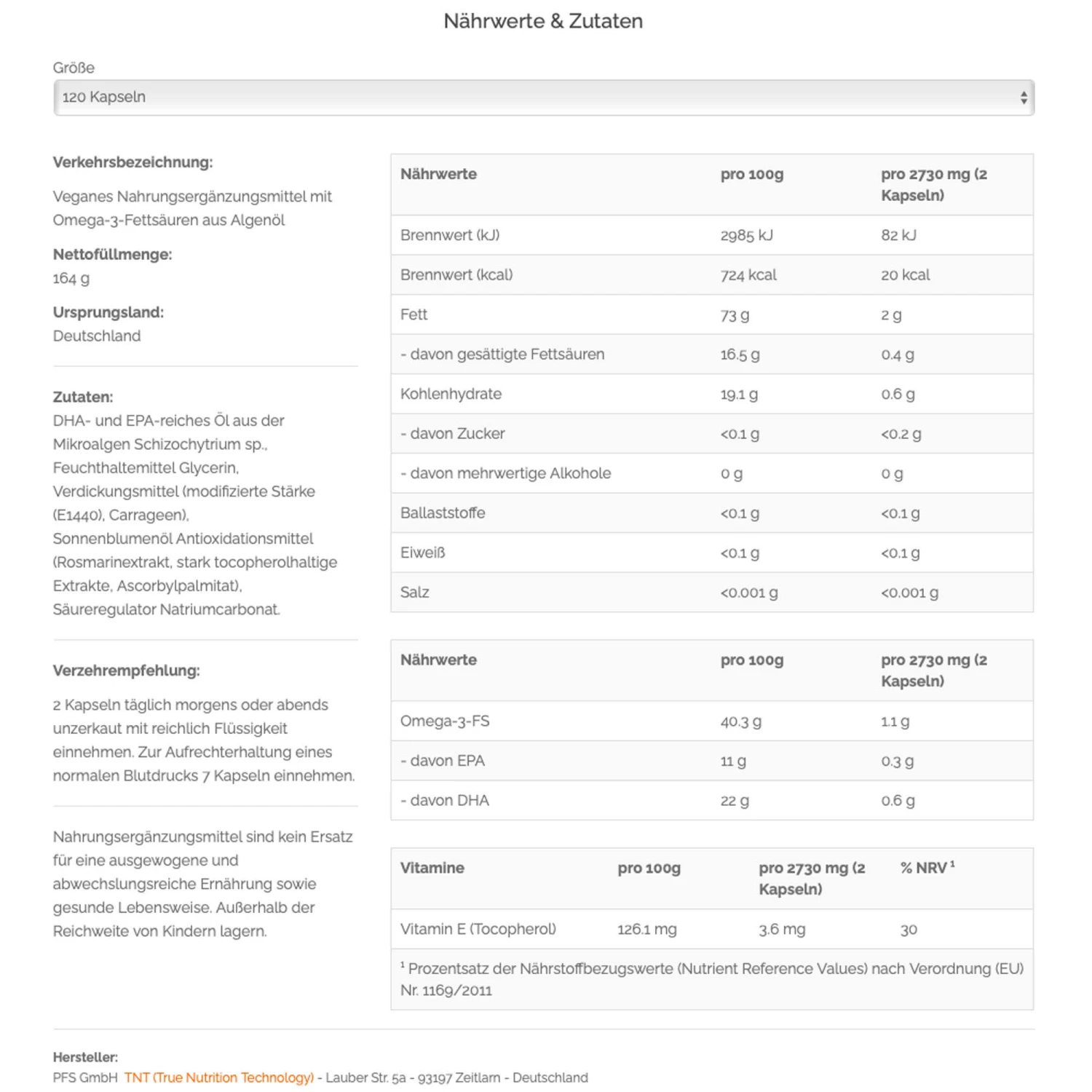 TNT Vegan Omega 3 – Premium Qualität aus Deutschland