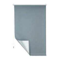 Das Verdunkelungsrollo in Grau ist schlicht und besonders praktisch. Die Thermo-Beschichtung kühlt Ihre Räume im Sommer und schützt Sie im Winter vor Kälte. Der lichtundurchlässige Hitzeschutz ist blickdicht und bietet Ihnen Privatsphäre bei zugezogenen Rollos. Durch die Kette lässt sich das Seitenzugrollo einfach und schnell bedienen. Eingerollt fällt das Fensterrollo kaum auf. Die Klemmfix-Vorrichtung ermöglicht ein Anbringen ohne Bohren. Für eine Wand- oder Deckenmontage liegt Material bei.