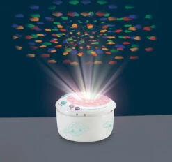 – 3 austauschbare Schablonen: Sternenhimmel, Wolken, Formen und Farben