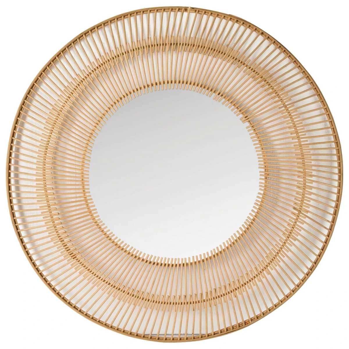 Natürlicher Wandspiegel in Form einer Sonne.