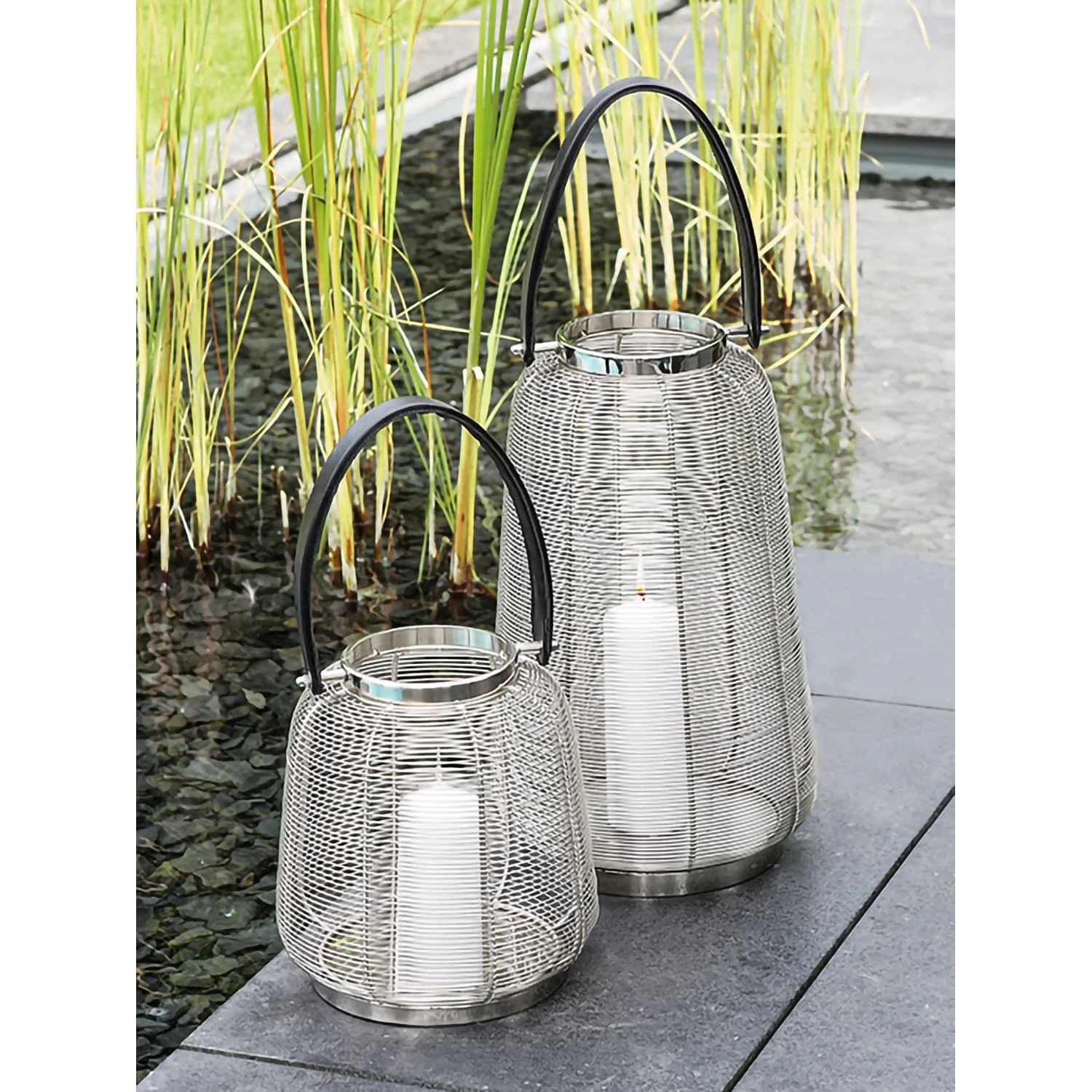 Das Windlicht Cage ist aus Edelstahl gefertigt und hat einen Henkel aus Kunstleder, somit ist es zum Stellen und Hängen geeignet. Durch den Glaseinsatz steht die Kerze geschützt. Dieses silberfarbene Schmuckstück ist durch das Gitter Design ein absoluter Blickfang! Die Laterne bildet einen abwechslungsreichen Kontrast und bereichert jeden Einrichtungsstil. Ob im Wohnbereich, dem Wintergarten oder im geschützten Außenbereich: dieses Windlicht ist immer und überall einsatzbereit und eine Dekoration, die niemals langweilig wird! Mit diesem Windlicht erzeugen Sie ein wunderbares Ambiente zum wohlfühlen! Es stellt mit seiner kühlen Optik einen lebendigen Kontrast zur Flamme im Inneren dar.
